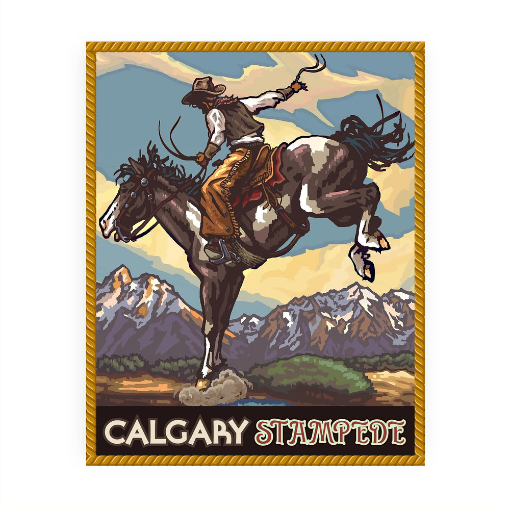 "Calgary Stampede" Cowboy Riding Horse Wall Art Sign -8 x 10" Country Rustic Rodeo Poster Print -Ready to Frame. Home-Office-Farmhouse Decor. Perfect Gift for All Cowboys & Cowgirls!