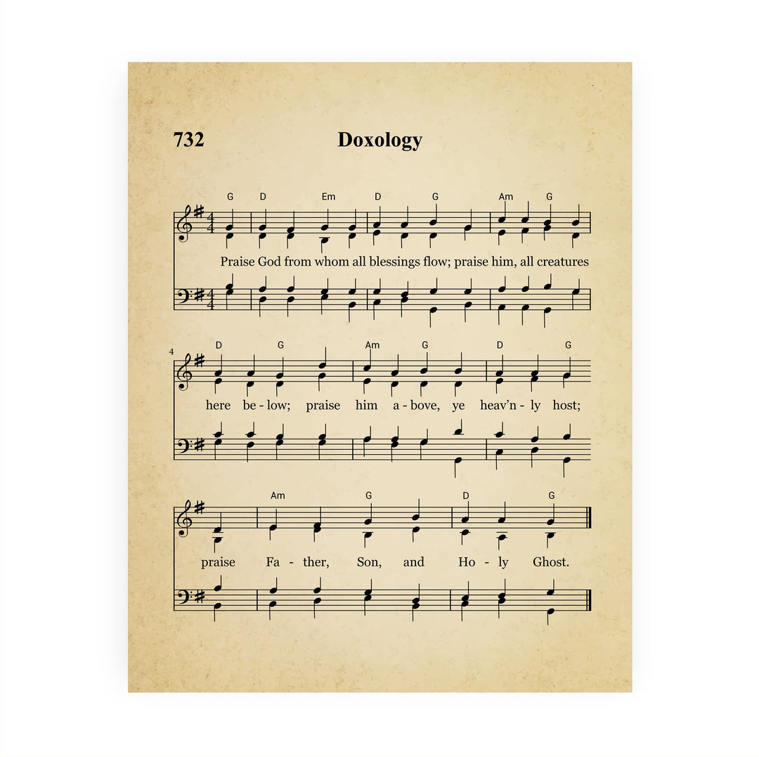 "Doxology -Praise God From Whom All Blessings Flow" Hymn Sheet Music Wall Art -8 x 10" Inspirational Christian Print -Ready to Frame. Classic Hymns for Home-Office-Church & Religious Decor!