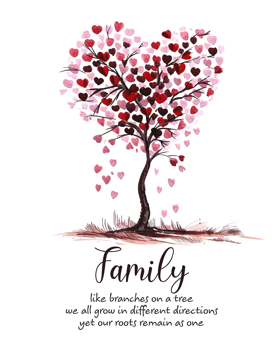"Family -Our Roots Remain As One" Tree of Hearts Wall Art Sign -8 x 10" Inspirational Poster Print -Ready to Frame. Home-Welcome-Cabin-Lake-Living Room Decor. Great Housewarming Gift!