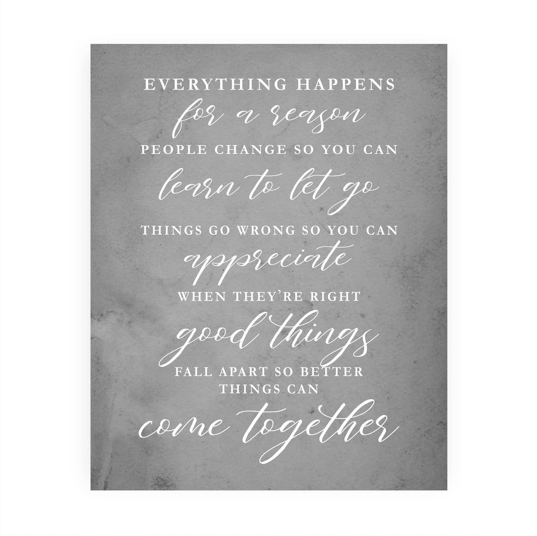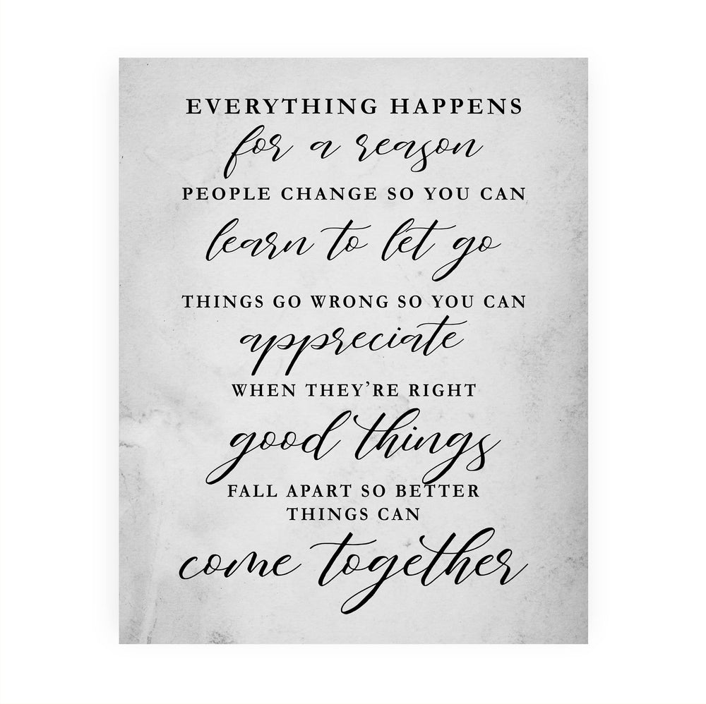 "Everything Happens For a Reason" Inspirational Quotes Wall Decor -8x10" Motivational Art Print-Ready to Frame. Modern Farmhouse Decoration for Home-Office-Classroom Sign. Great Gift!