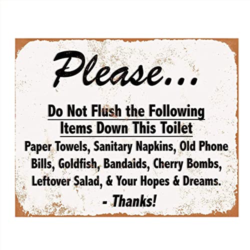 "Do Not Flush Down Toilet-Napkins, Bombs, Hope & Dreams"- Funny Vintage Bathroom Sign- 8 x 10"