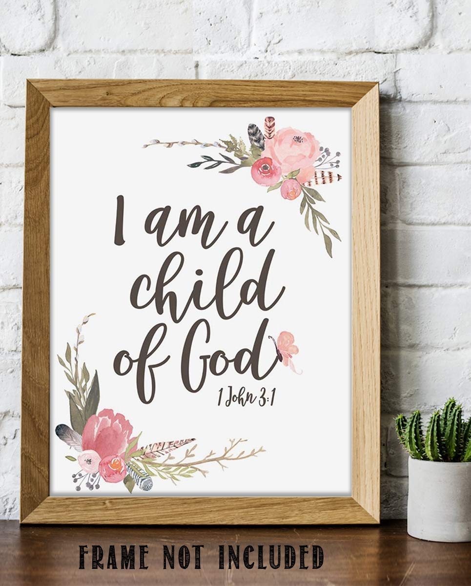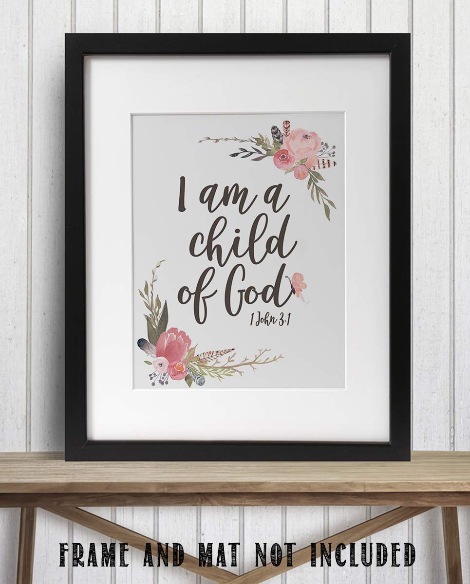 "I Am A Child of God"- 1 John 3: 1- Bible Verse Wall Art-8x10