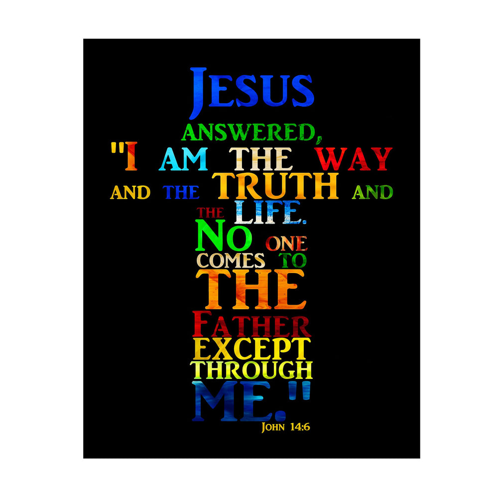 "Jesus-I Am the Way, Truth & Life"-Bible Verse Wall Art -Cross Word Art Sign -Scripture Wall Print-Ready to Frame. Home-Office-Church-Religious Decor. John 14:6. Great Christian Gift!
