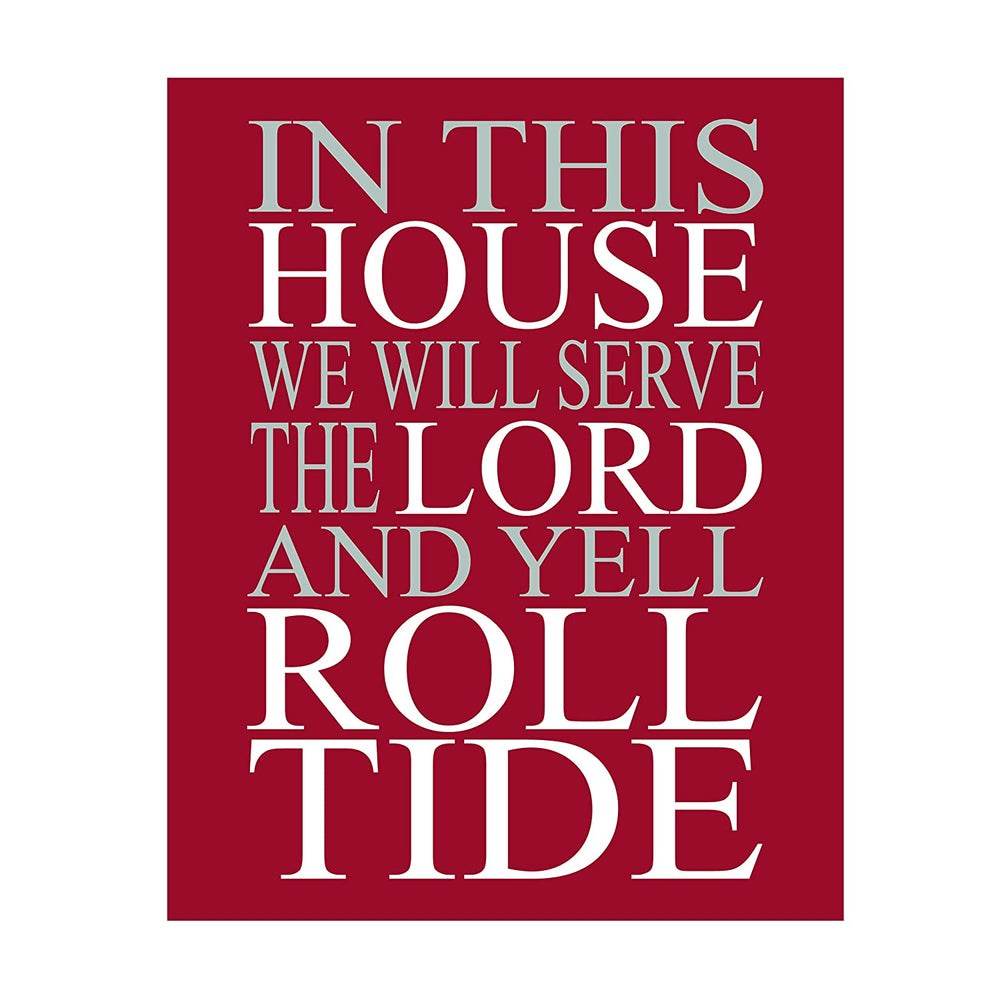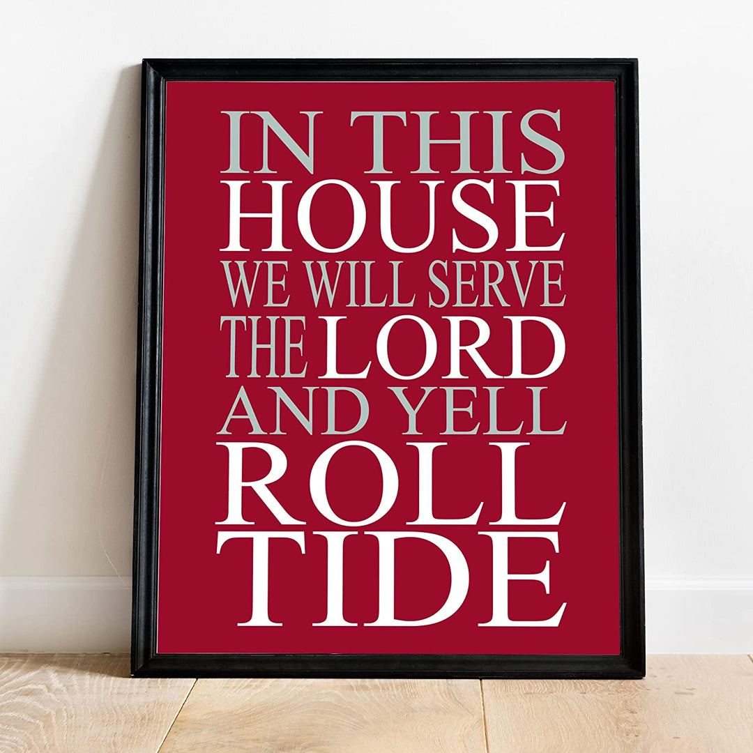 "In This House-Worship the Lord-Yell Roll Tide" Inspirational Football Quotes Wall Art -11 x 14"