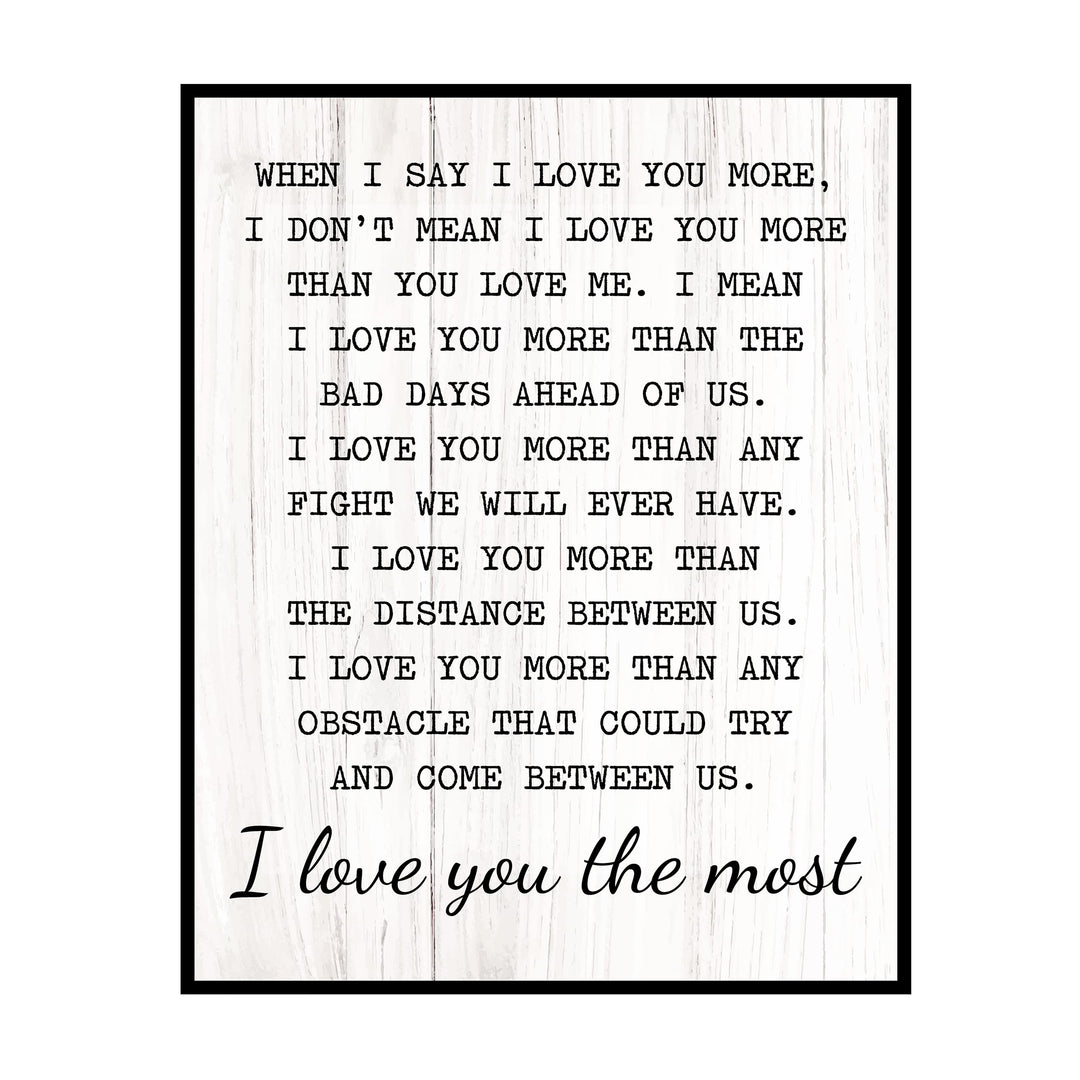 "I Love You the Most" Inspirational Quotes Wall Art Decor -11 x 14" Love & Marriage Print -Ready to Frame. Modern Typographic Wood Design. Romantic Gift & Wedding Sign for All Couples!