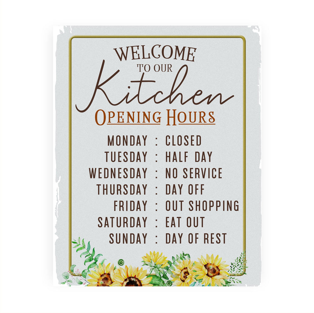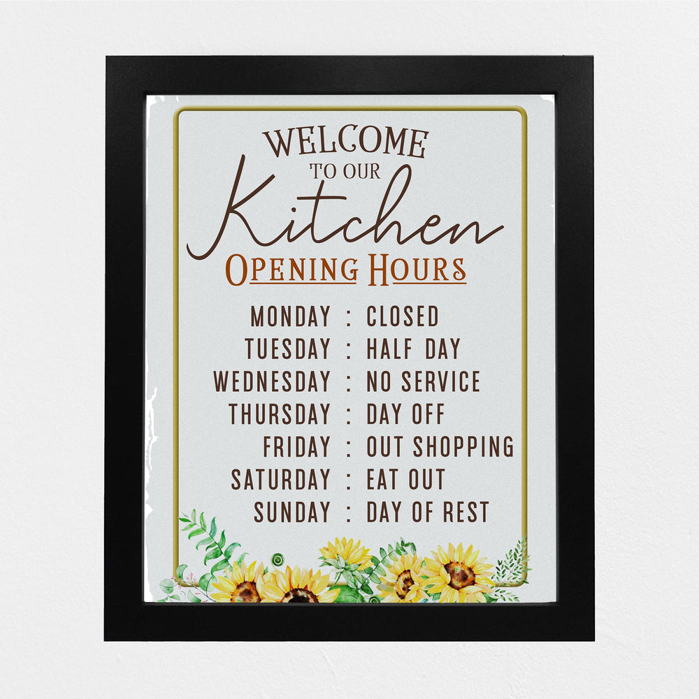 "Kitchen Opening Hours: Monday Closed" Funny Kitchen Wall Sign -11 x14" Typographic Farmhouse Wall Art Print -Ready to Frame. Perfect Home, Kitchen, & Dining Decor. Fun for Family & Guests!