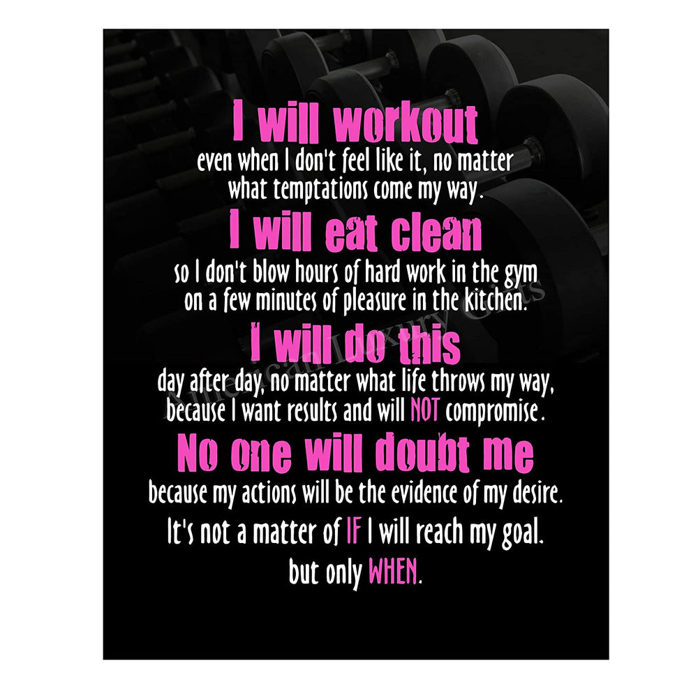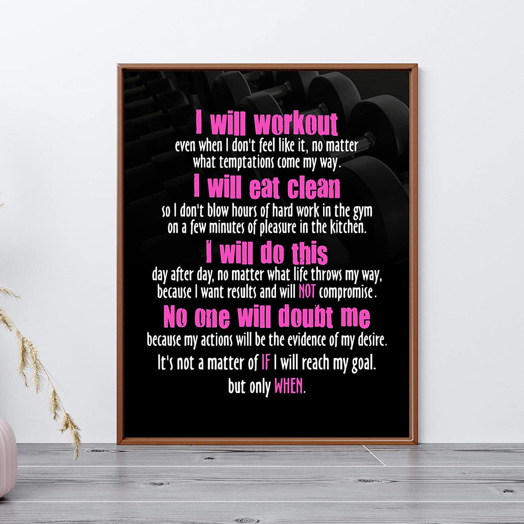 "I Will Workout & Eat Clean" Motivational Quotes Exercise Wall Sign-11 x 14"
