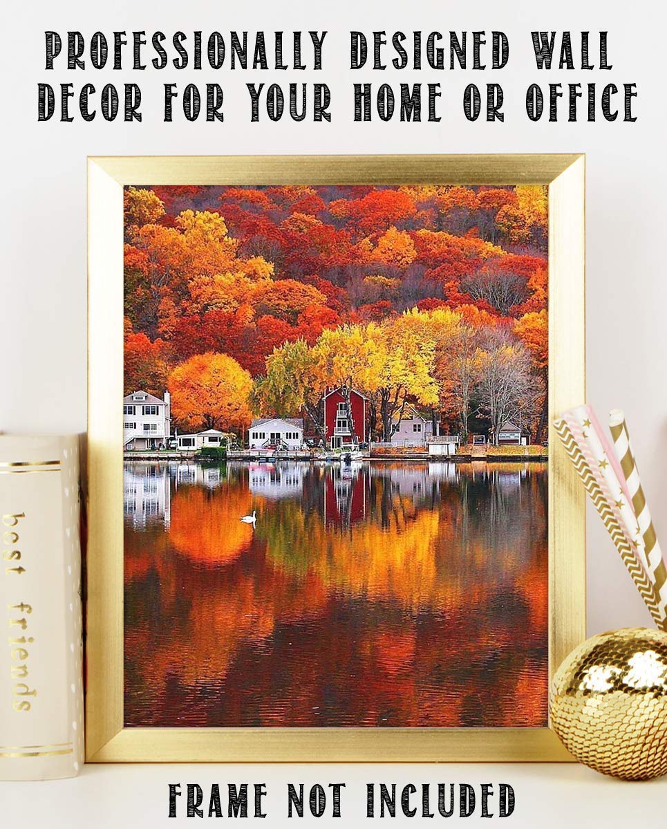 Fall Foliage- Autumn Mountain Lake- 8 x 10" Print Wall Decor Art- Ready to Frame. Home D?cor-Office D?cor. Beautiful Northeast USA, Full Fall Colors- Reflections in the Lake-Great Gift for Fall Lovers