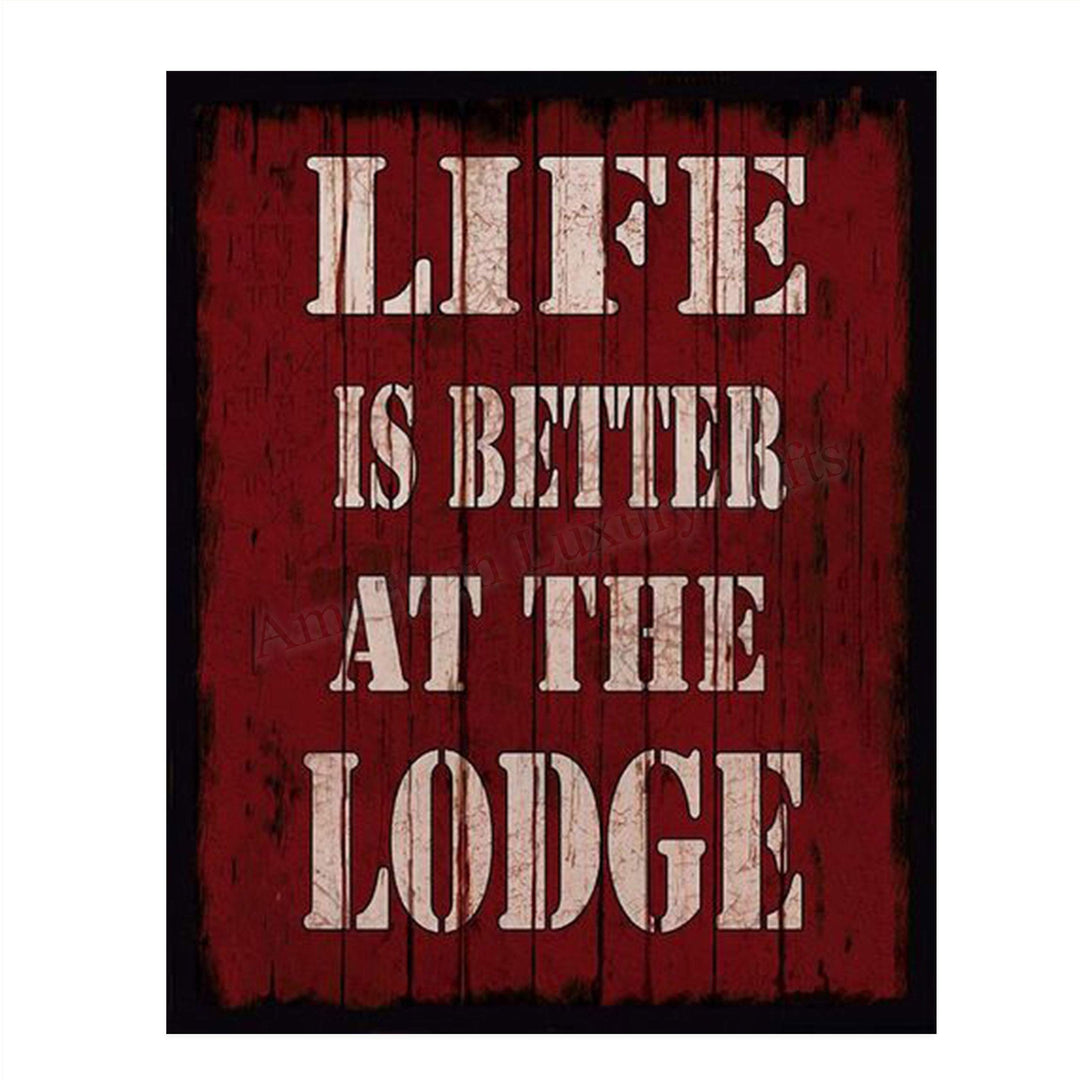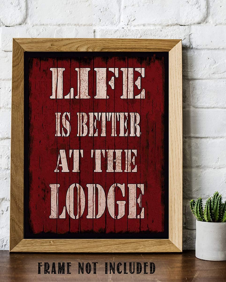 Life Is Better At The Lodge- Rustic Sign Print- 8 x 10" Wall Art Print- Ready to Frame. Distressed Wood Sign Replica Print. Wall Decor- Perfect for Home-Cabin-Deck-Lodge-Lake. Make a Great Gift!