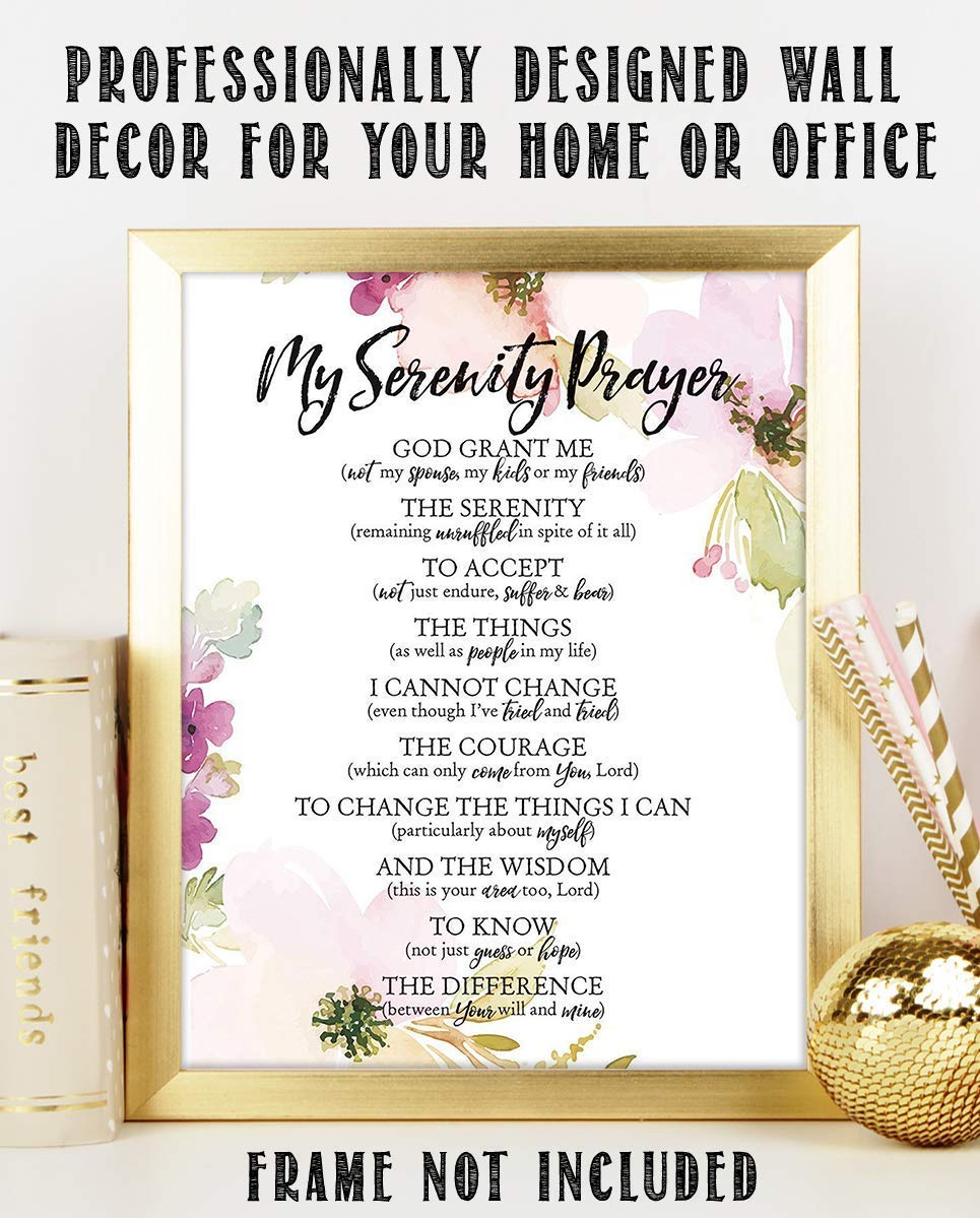 SERENITY PRAYER & Thoughts- 8 x 10"- Art Poster Print- Scripture Wall Art- Elegant Floral Design-Ready to Frame. Home-Church-Office D?cor-Christian Gifts. Inspiring & Encouraging Verse by Niebuhr.