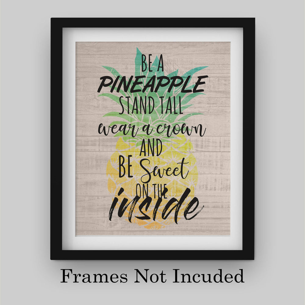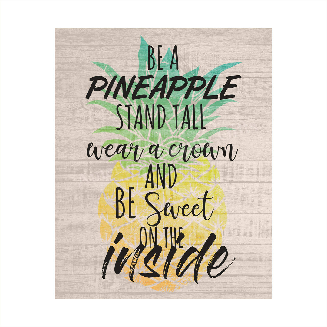 Be a Pineapple-Sweet on the Inside Funny Beach Sign -8 x 10" Wall Art Print-Ready to Frame. Modern Typographic Print w/Distressed Wood Design. Fun Home-Beach House-Ocean Decor. Great Gift for All!