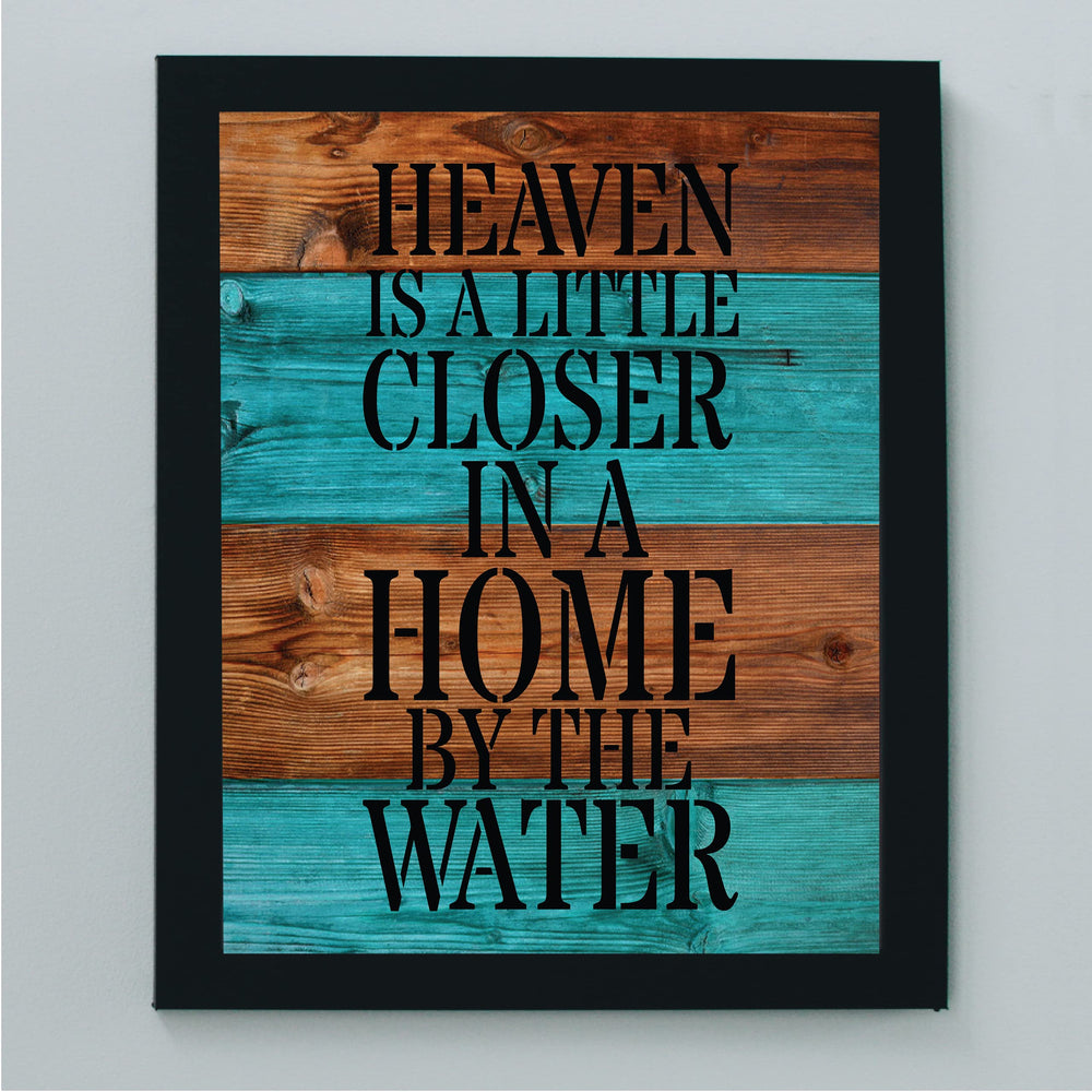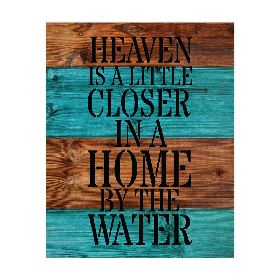 Heaven Is a Little Closer In a Home By The Water Rustic Lake-Beach House Sign-8 x 10" Wall Decor Print-Ready to Frame. Rustic Typographic Wood Design Print- Beach-Lake-Nautical Decor. Great Gift!