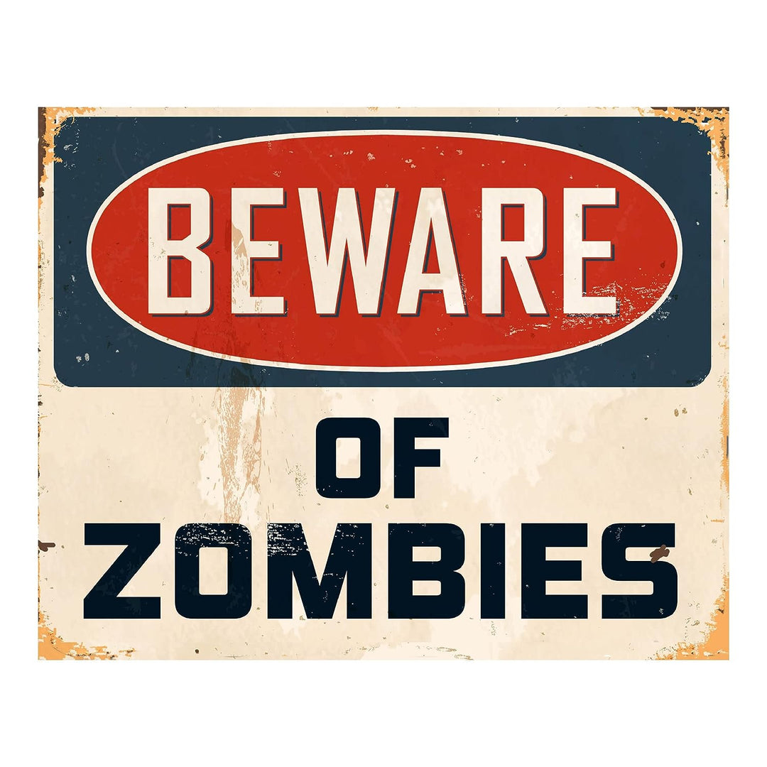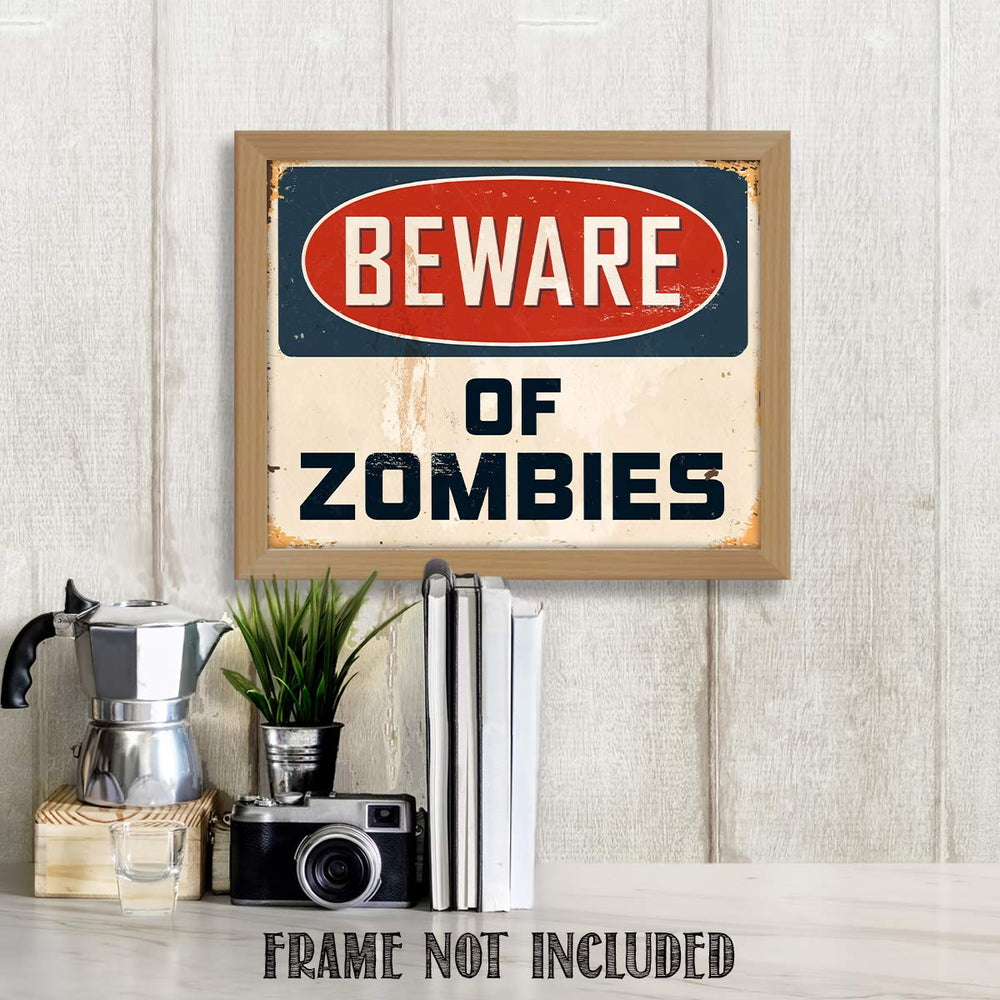 Beware of Zombies- Funny Sign Poster Print- 8 x 10" Distressed Wall Decor Print-Ready To Frame. Humorous Decor for Home-Man Cave-Garage-Bar-Dorm-Shop. Great Door Sign & Gag Gift.