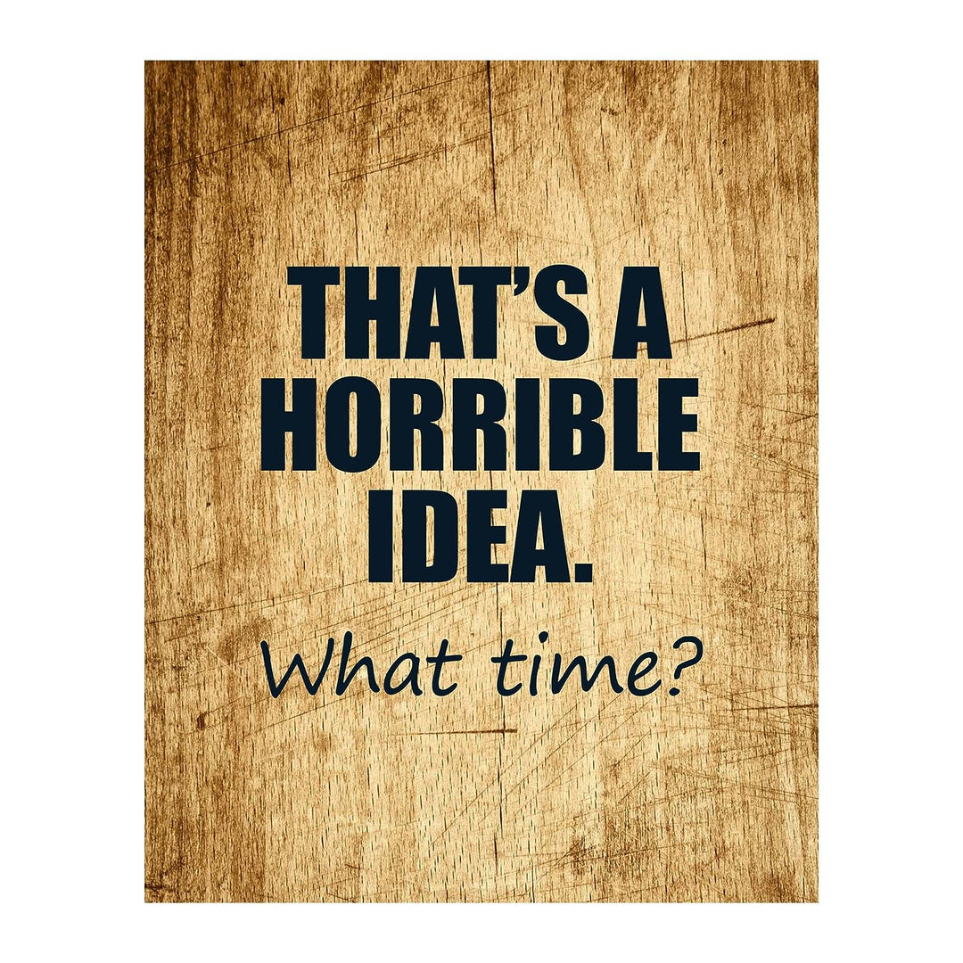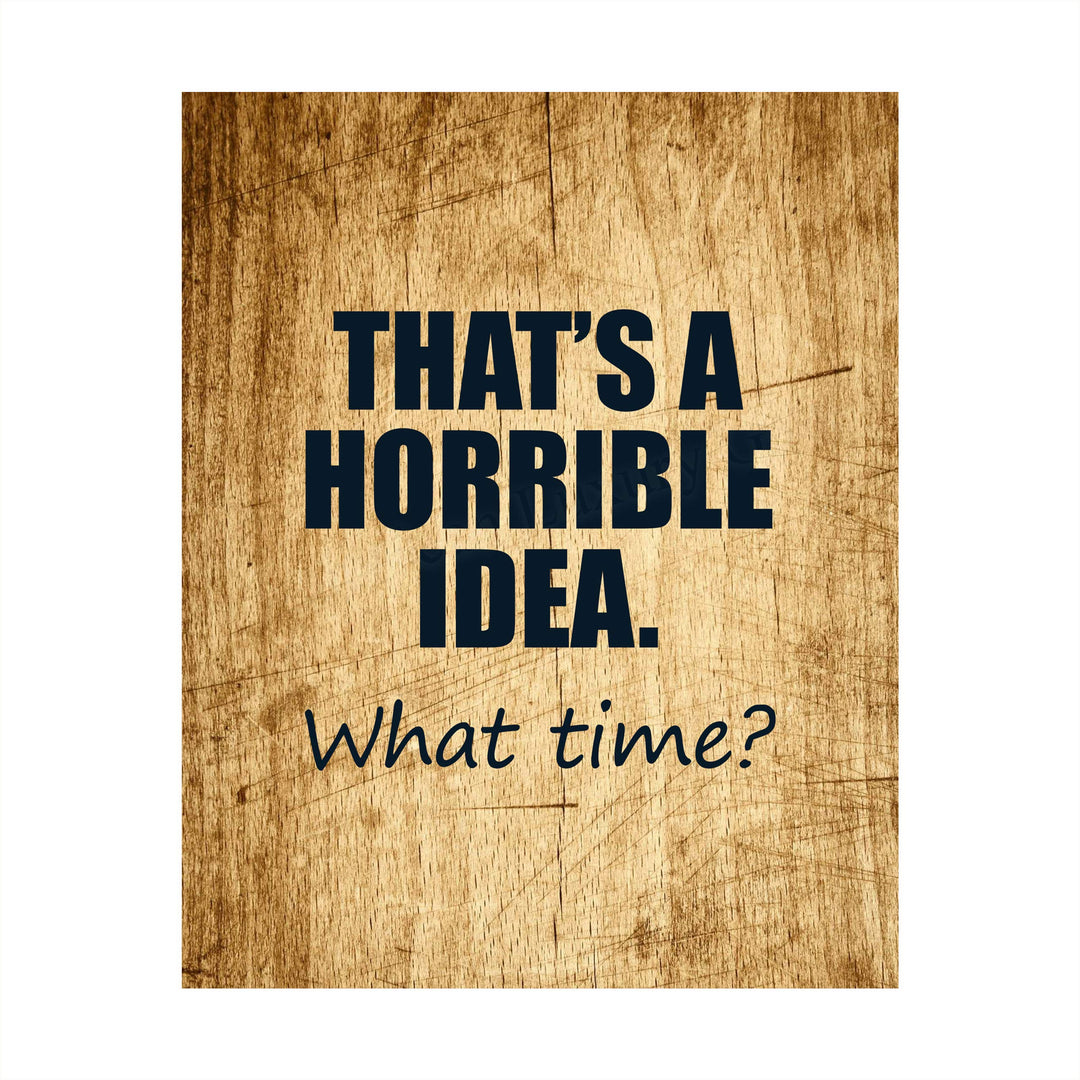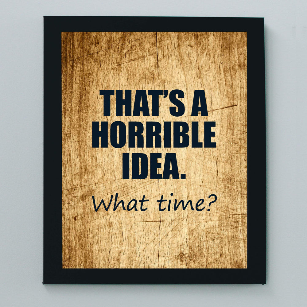 That's A Horrible Idea-What Time? Funny Wall Art Sign -8 x 10" Humorous Typographic Poster Print-Ready to Frame. Home-Office-Bar-Shop Decor. Fun Novelty Gift for Friends & Family! Printed on Paper.