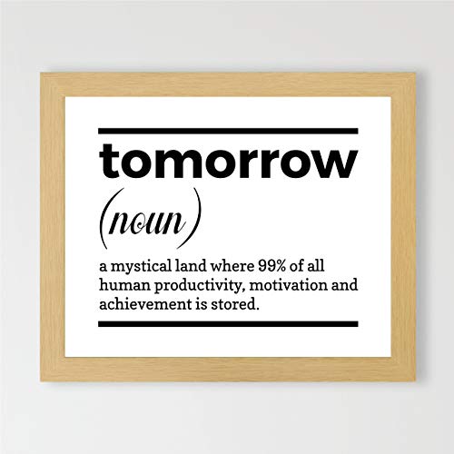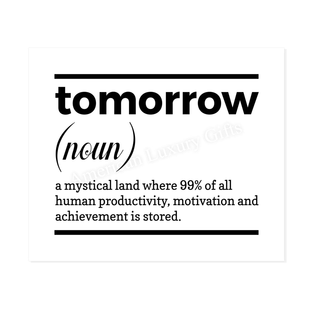 Tomorrow-A Mystical Land Funny Wall Art Sign -10 x 8" Typographic Poster Print-Ready to Frame. Humorous Home-Office-Cave-Classroom Decor. Perfect Desk-Cubicle Sign! Fun Gift for Sarcastic Friends!