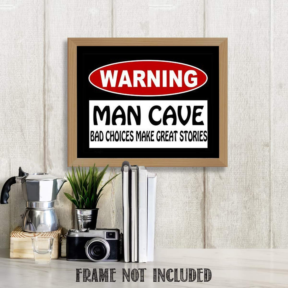 Man Cave Sign-"Bad Choices Make Great Stories" Print- 8 x10" Wall Decor Image- Ready To Frame. Runny Rustic Sign. Great Party Gift- Bar Decor. Perfect for Man Cave-Game Room-Garage- Dorm.