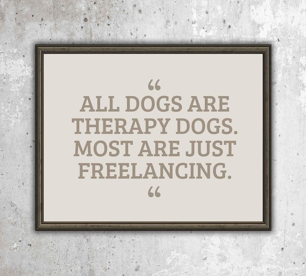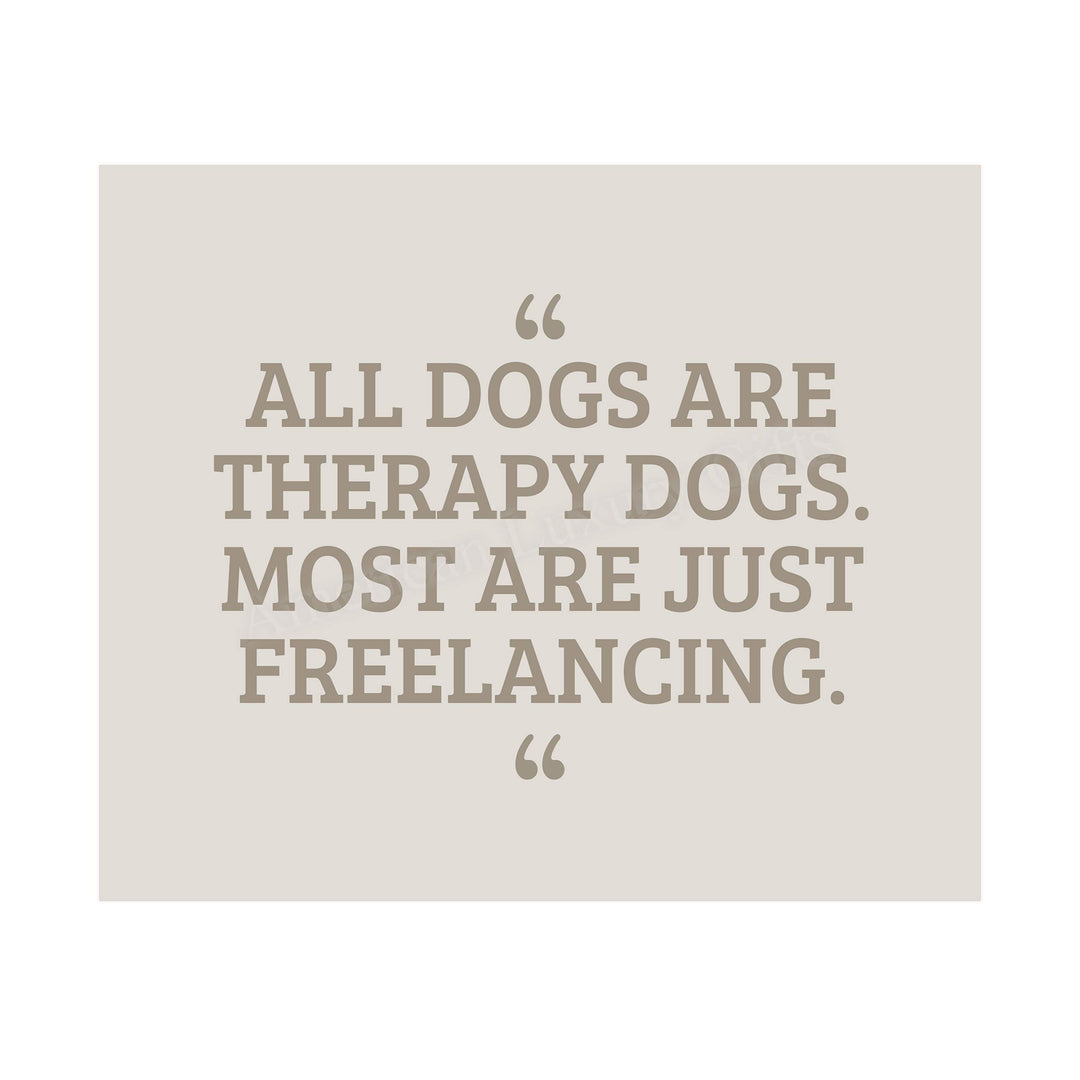 All Dogs Therapy Dogs-Most Freelancing Funny Dog Wall Art Sign -10 x 8" Typographic Poster Print-Ready to Frame. Humorous Decor for Home-Office-Vet Clinic. Fun Sign & Reminder for All Dog Lovers!