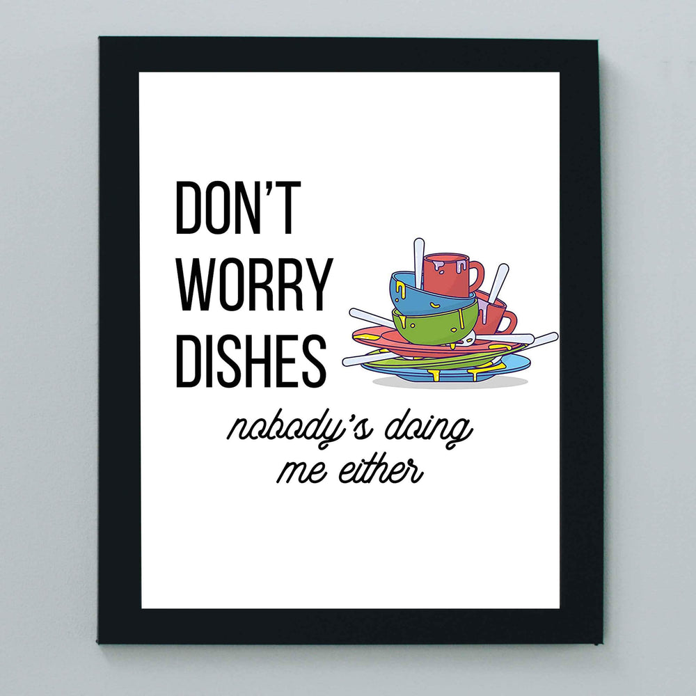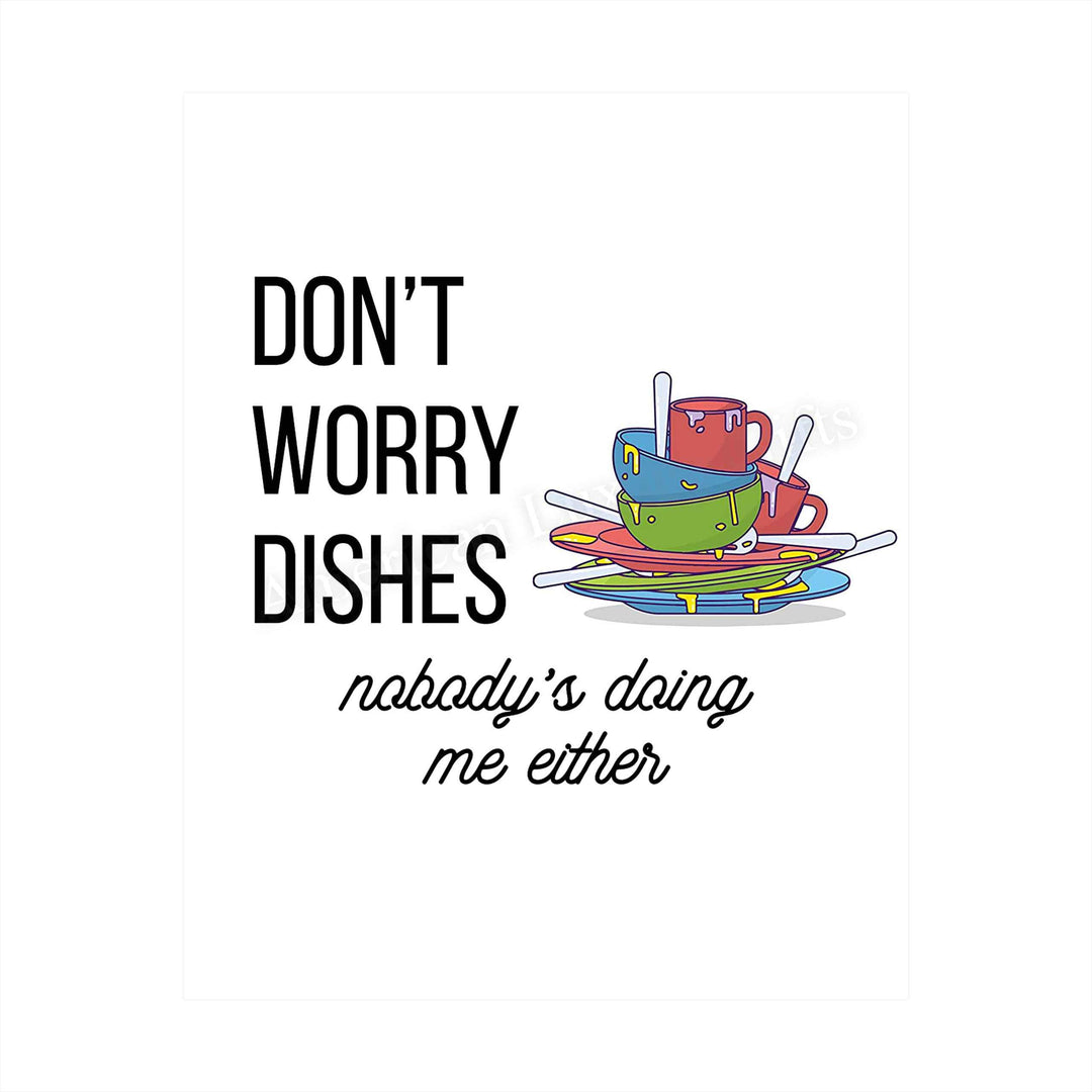 Don't Worry Dishes-Nobody's Doing Me Either Funny Wall Art Sign -8 x 10" Sarcastic Poster Print-Ready to Frame. Humorous Home-Garage-Bar-Shop-Cave Decor. Great Novelty Sign & Fun Gag Gift!