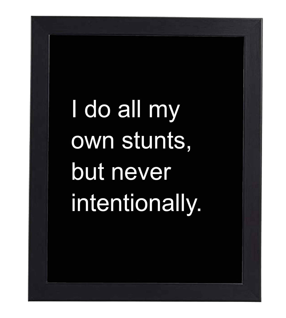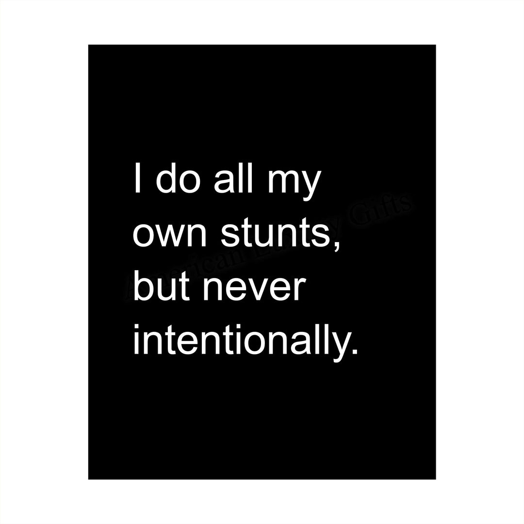 I Do All My Own Stunts But Never Intentionally Funny Wall Art Sign -8 x 10" Humorous Typographic Poster Print-Ready to Frame. Home-Office-Bar-Shop Decor. Fun Gift for Sarcastic Friends & Family!
