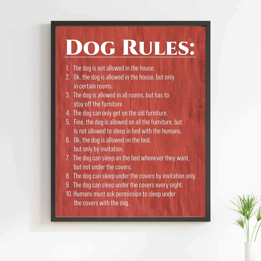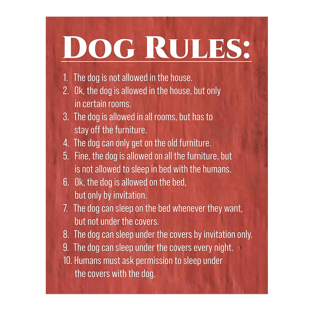 Dog Rules Funny Wall Sign -11 x 14" Typographic Art Print-Ready to Frame. Home-Kitchen-Entryway Decor. Great Housewarming Gift-Perfect for Dog Lovers! Humorous Reminders for Guests & Pet Owners!