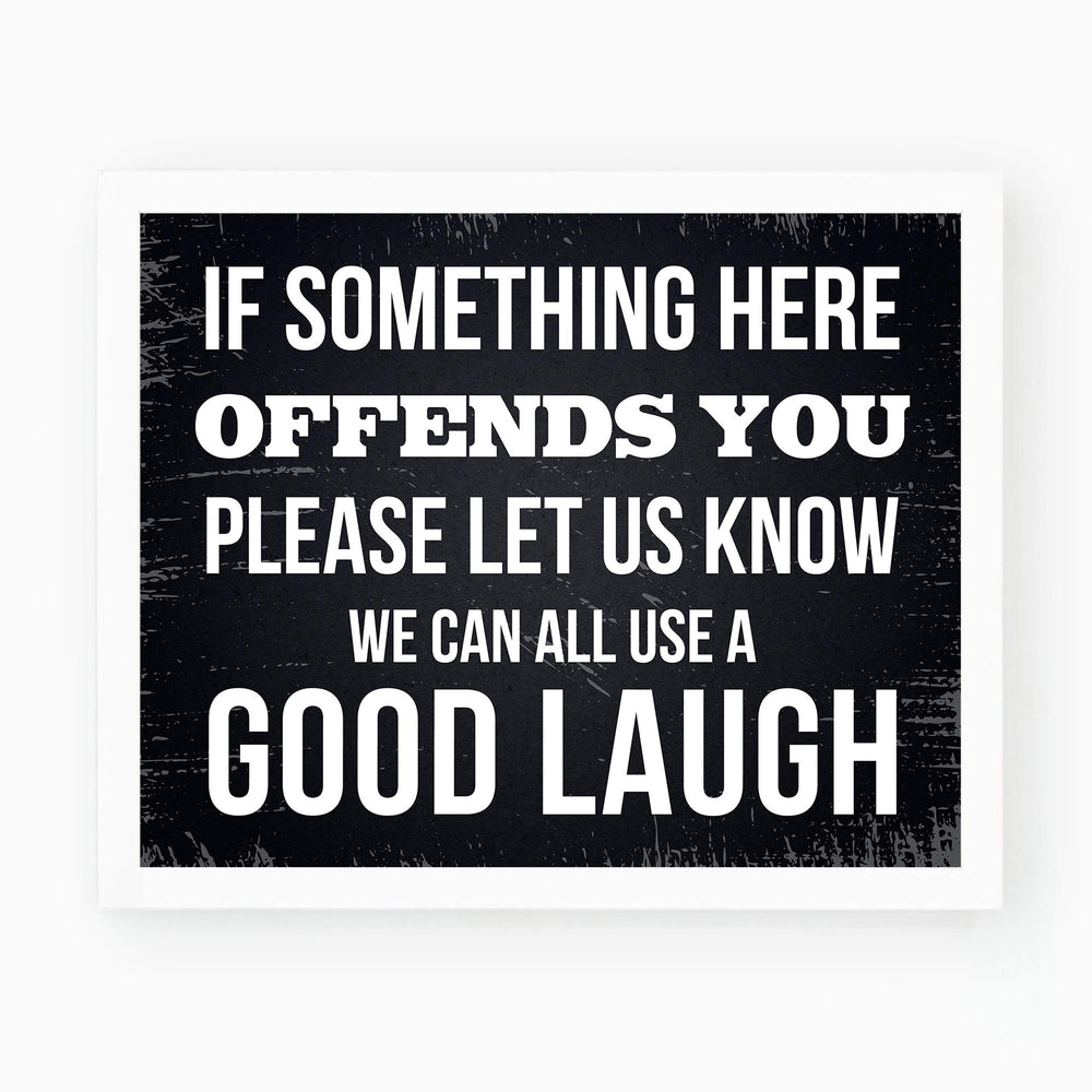 If Something Offends You Here-Let Us Know Funny Wall Decor -10 x 8" Sarcastic Art Print-Ready to Frame. Rustic Home-Office-Bar-Shop-Man Cave Decor. Fun Novelty Gift! Printed on Photo Paper.