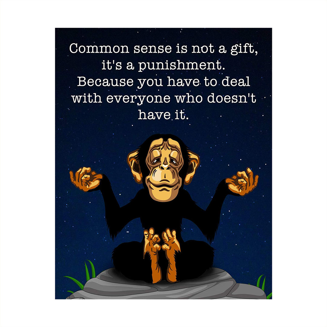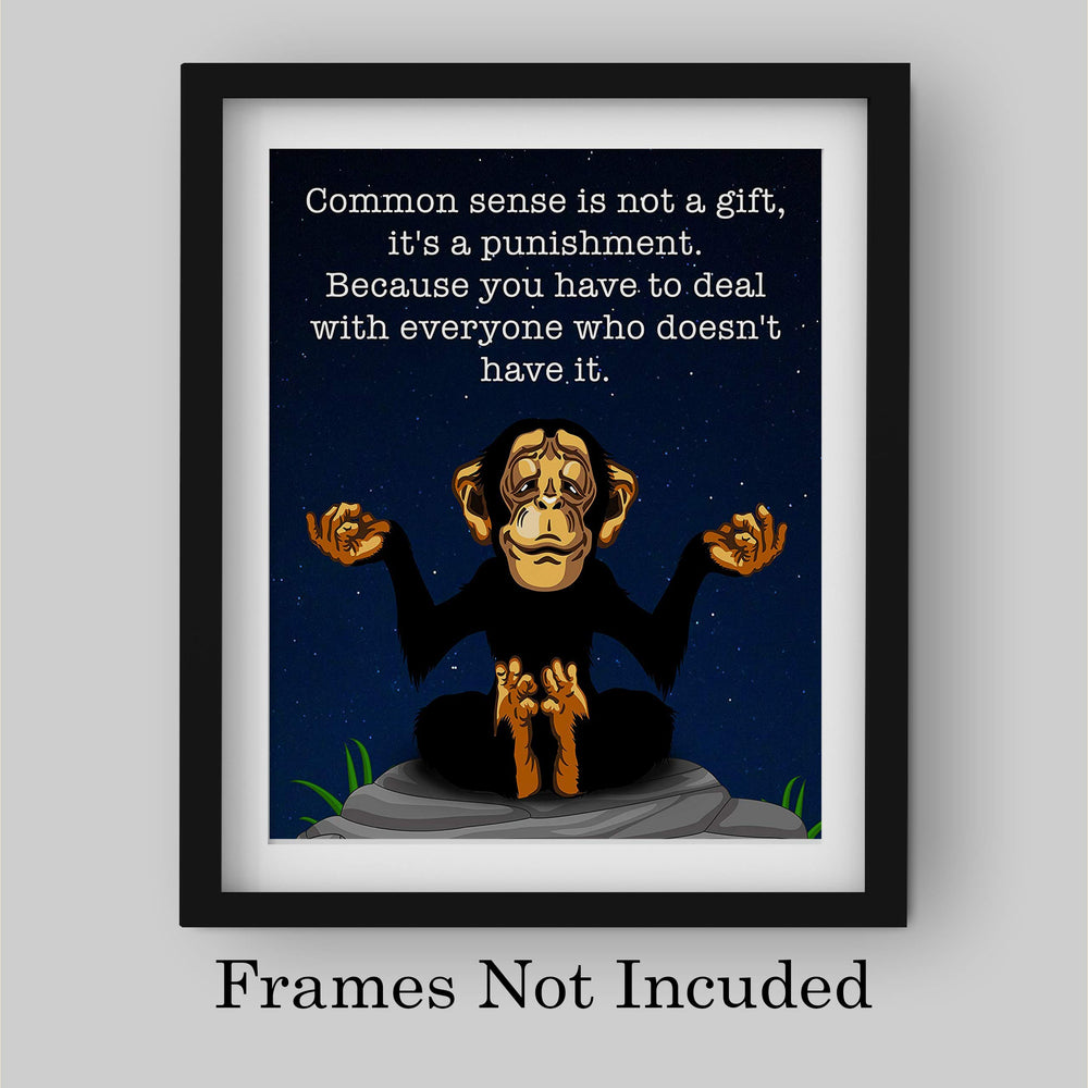 Common Sense-Not a Gift-It's a Punishment Funny Wall Art Decor -8 x 10" Sarcastic Yoga Chimp Print -Ready to Frame. Humorous Decoration for Home-Office-Bar-Shop-Man Cave. Fun Novelty Sign!