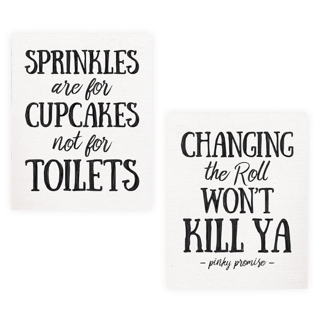 Sprinkles Are For Cupcakes-Changing Roll Won't Kill Ya- Funny Bathroom Sign Set (2)- 8 x 10's Prints Wall Art-Ready to Frame. Home-Office-Bathroom D?cor. Perfect For Guest Bath, Bar & All Restrooms.