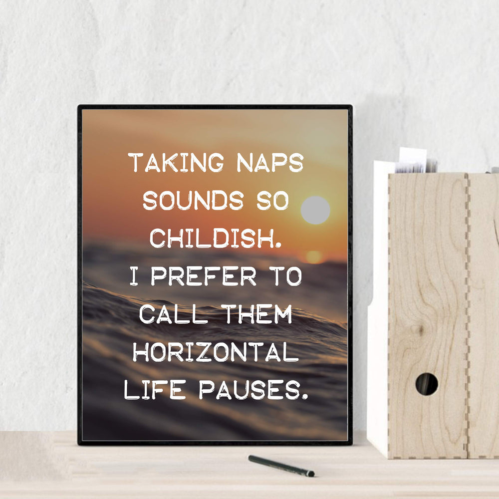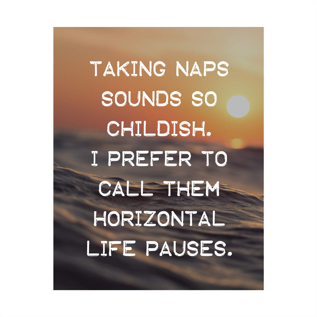 Taking Naps Sounds So Childish Funny Wall Art Sign -8 x 10" Ocean Sunset Poster Print-Ready to Frame. Humorous Home-Office-Bar-Shop-Cave Decor. Great Novelty Sign & Fun Gift for Sarcastic Friends!