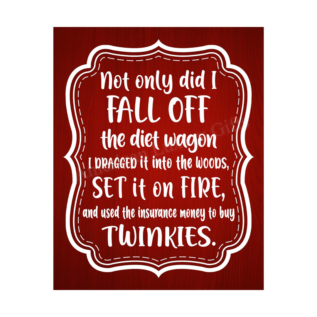 Not Only Did I Fall Off the Diet Wagon Funny Wall Art Sign -8 x 10" Humorous Typographic Poster Print-Ready to Frame. Perfect Home-Kitchen-Office-Cave-She Shed Decor. Fun Novelty Gift for All!