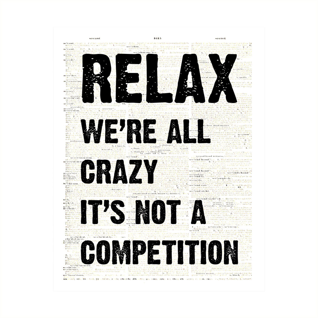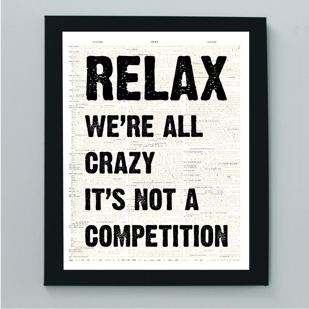 Relax-We're All Crazy-Not a Competition Funny Wall Decor -8 x 10" Sarcastic Typographic Art Print-Ready to Frame. Humorous Decor for Home-Office-Bar-Shop-Man Cave. Fun Sign! Great Novelty Gift!
