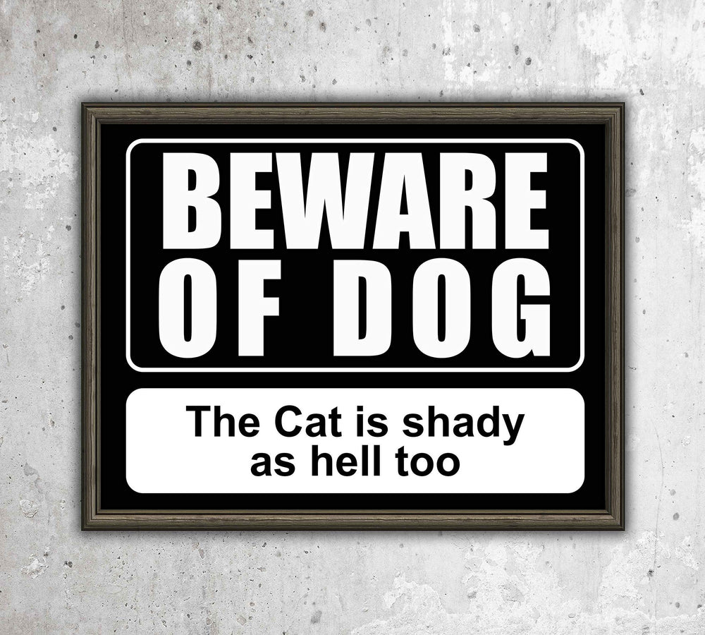 Beware of Dog-Cat Shady As Hell Too Funny Pet Sign-10 x 8" Typographic Wall Art Print-Ready to Frame. Humorous Home-Kitchen-Vet's Office Decor. Fun Reminder for Guests! Perfect Gift for Pet Lovers!