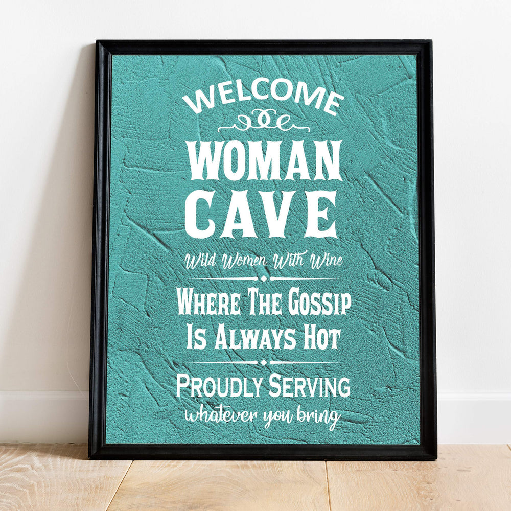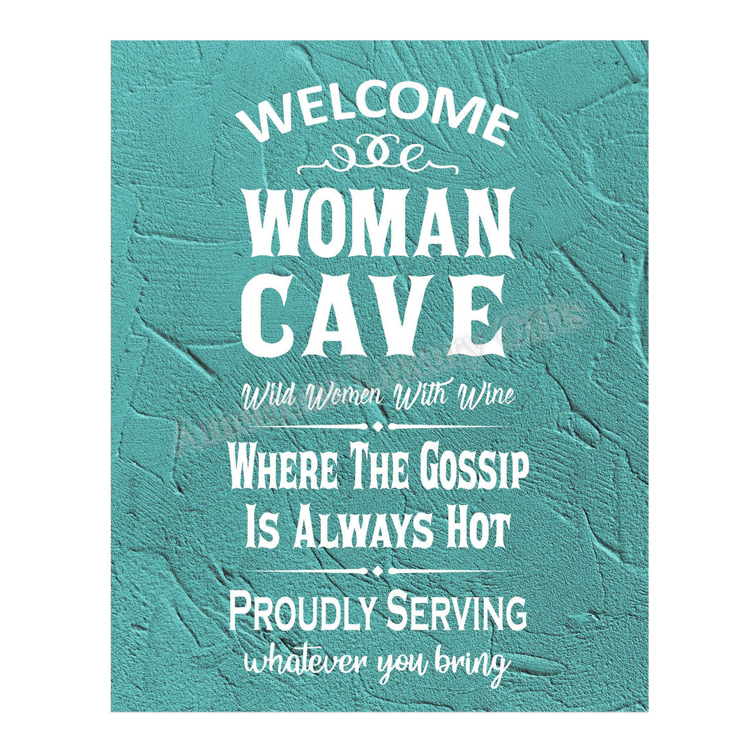 Welcome-Woman Cave-Wild Women With Wine Funny Wall Art Sign -11 x 14" Humorous Typographic Poster Print-Ready to Frame. Perfect Home-Kitchen-Office-She Shed Decor. Great Gift for All the Ladies!