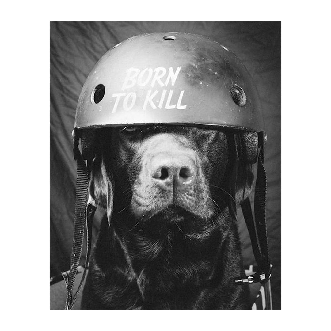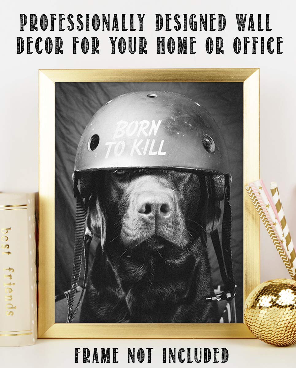 Born To Kill- Funny Dog Poster Print- 8 x 10" Print Wall Art- Ready to Frame. Retro Black & White Photography Print of Humorous Helmeted Dog for Home-Office-Garage-Bar-Man Cave D?cor. Great Gift!