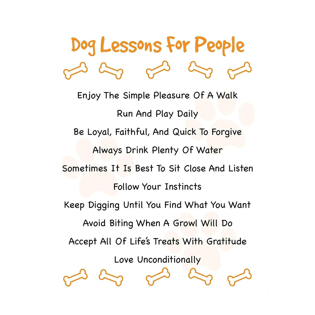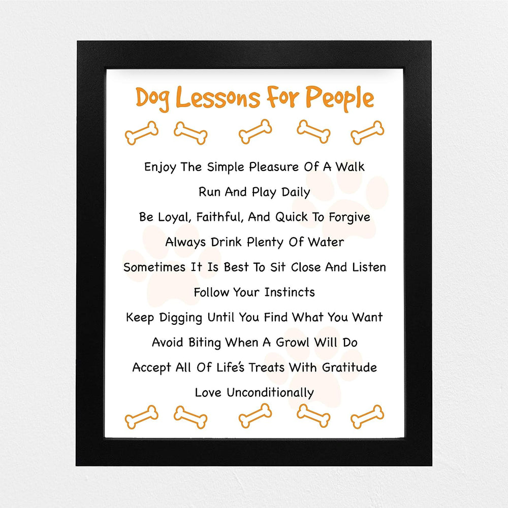 Dog Lessons For People Funny Wall Sign -8 x 10" Inspirational Typographic Art Print-Ready to Frame. Home-Kitchen-Vet's Office Decor. Perfect Sign for Dog Lovers! Humorous Reminders for All!