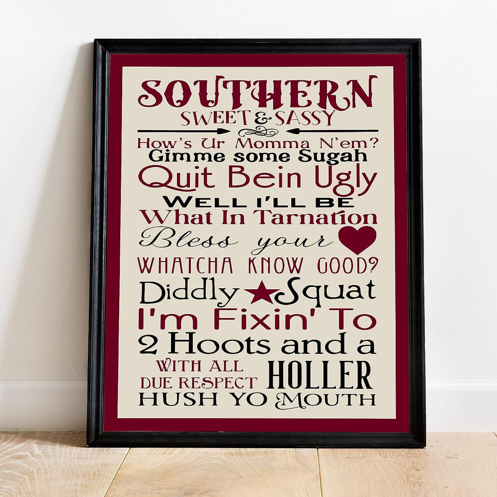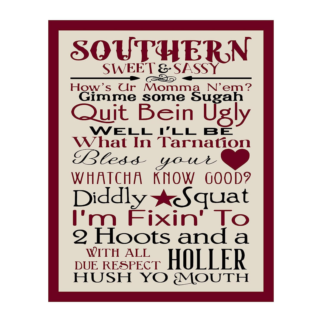 Southern-Sweet & Sassy Country Rustic Wall Art-11 x 14" Decorative Farmhouse Print -Ready to Frame. Chic Decoration for Home-Office-Studio Decor. Perfect Welcome Sign! Great Gift for Southerners!