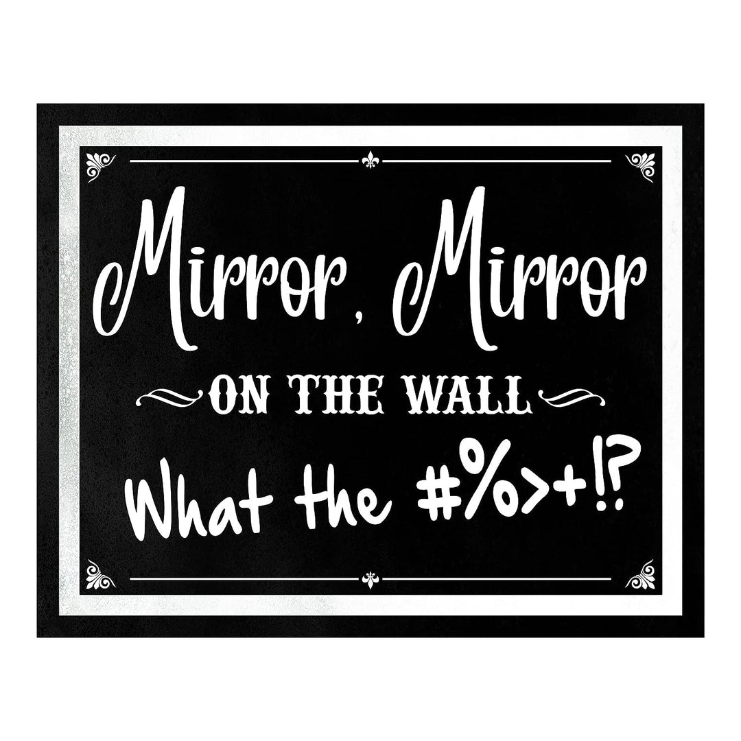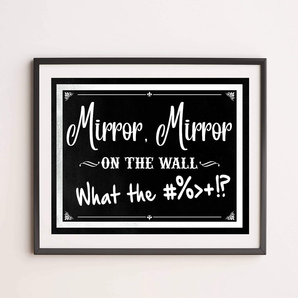 Mirror Mirror, On the Wall-What the #%>+!? Funny Bathroom Wall Decor-14 x 11" Sarcastic Typographic Art Print-Ready to Frame. Humorous Print for Home-Office-Bar-Studio-Cave Decor. Fun Novelty Gift!