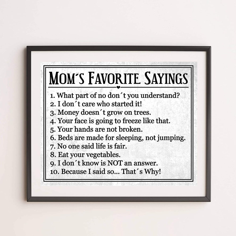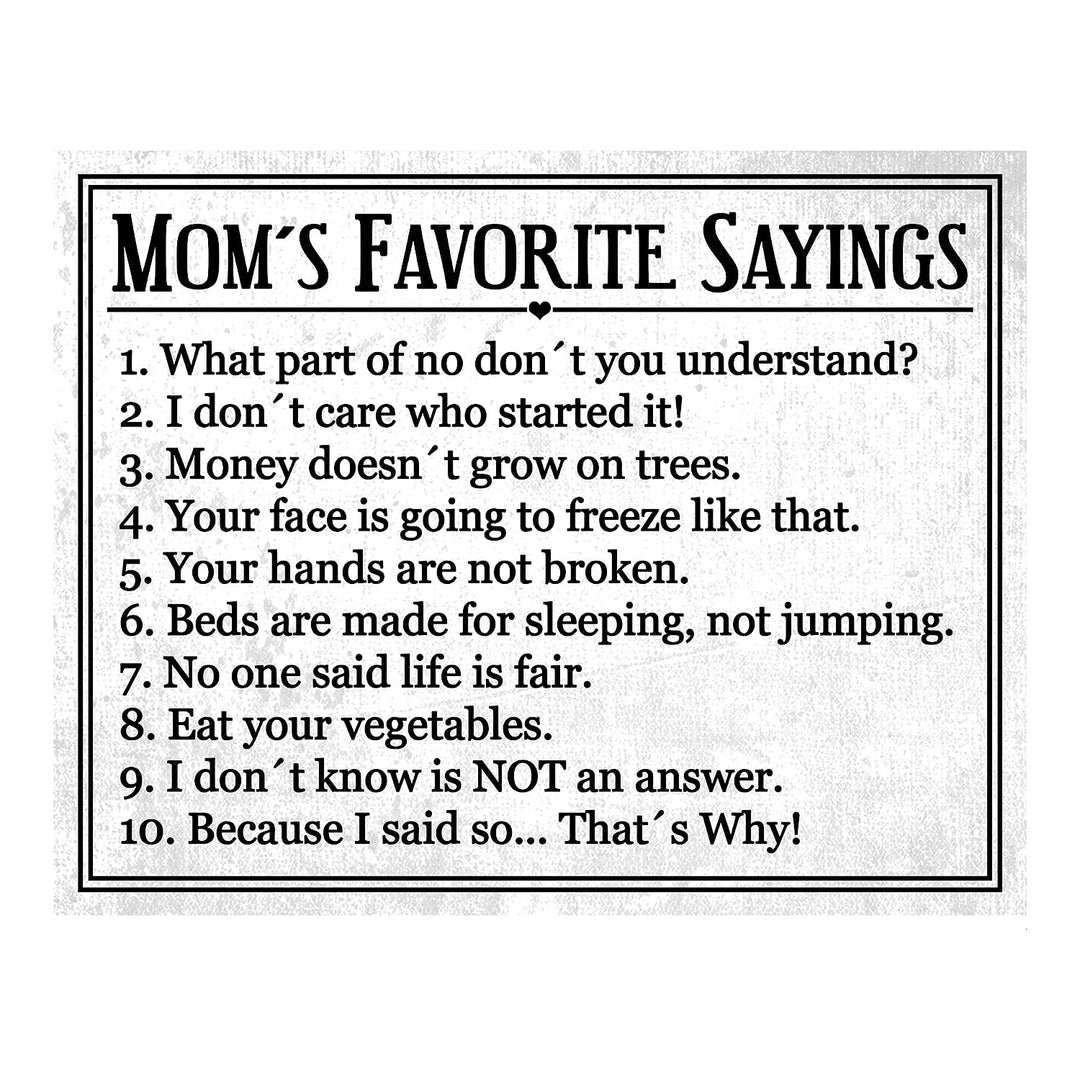 Mom's Favorite Sayings-'Because I Said So' Funny Wall Art Sign -14 x 11" Rustic Typographic Poster Print-Ready to Frame. Humorous Decoration for Home-Family Room-Patio Decor. Fun Gift for Mom!