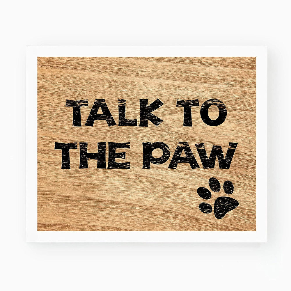 Talk To The Paw Funny Dog Wall Decor -10 x 8" Rustic Wall Art Print w/Replica Wood Design-Ready to Frame. Home-Kitchen-Vet's Office Decor. Humorous Sign for All Dog Owners! Printed on Photo Paper.