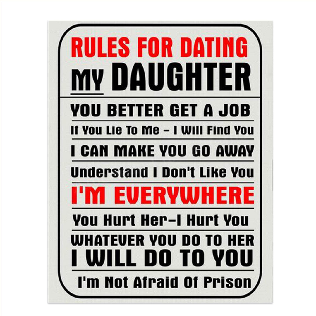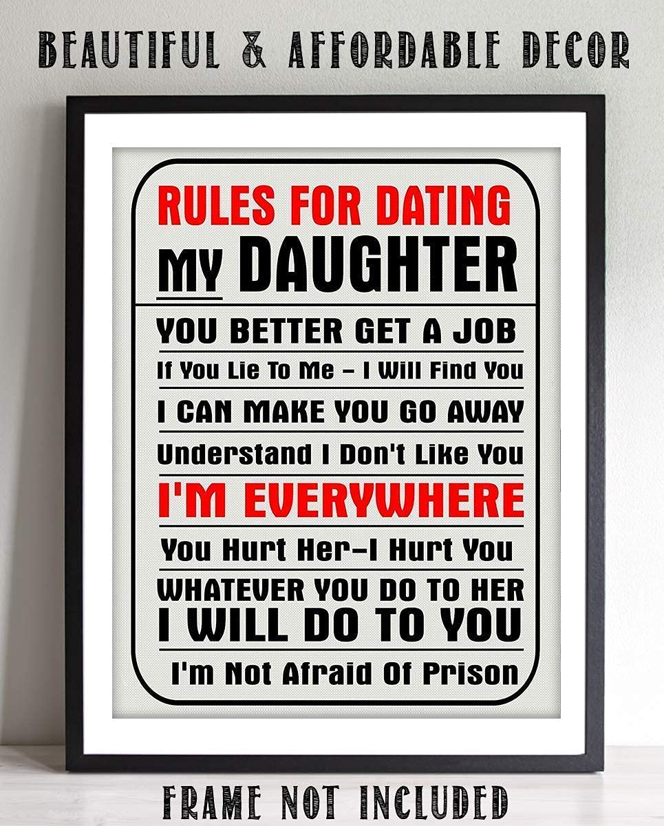 Rules For Dating My Daughter- Funny Wall Art- 8 x 10" Print Wall Decor-Ready to Frame. Humorous Replica Print for Home Decor, Man Cave, Garage & Bar. Just Point The Young Men to The Sign!