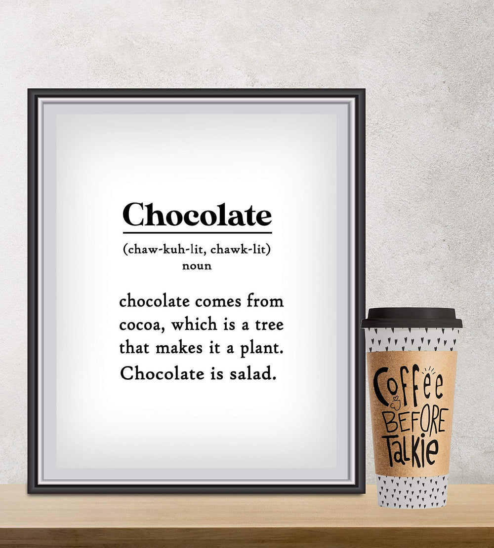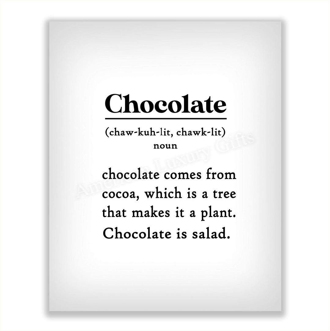 Chocolate Is Salad- Funny Wall Art Sign - 8 x 10" Humorous Typographic Poster Print-Ready to Frame. Ideal Home-Kitchen-Office-Restaurant-Cafe D?cor. Perfect Novelty Gift for Chocolate Lovers!