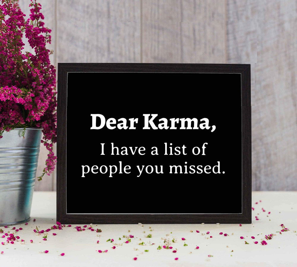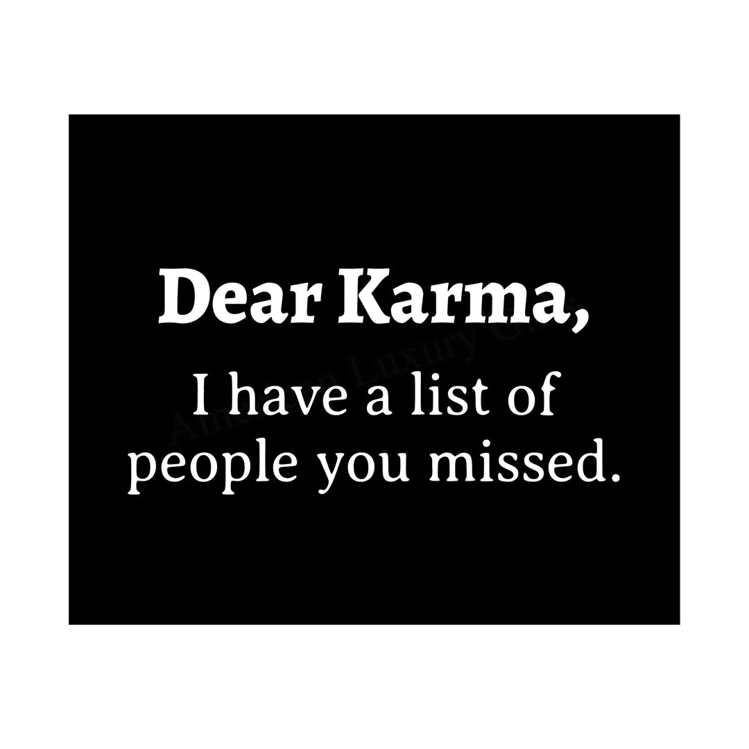 Dear Karma-Have A List of People You Missed Funny Quotes Wall Art Sign- 10 x 8" Sarcastic Typographic Poster Print-Ready to Frame. Humorous Home-Studio-Office-Desk Decor. Perfect Zen-Novelty Gift!