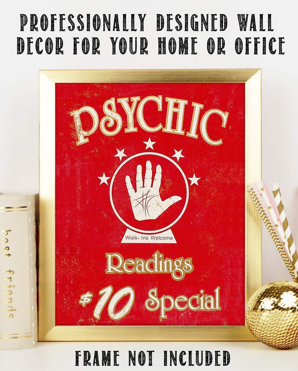 Psychic Readings- $10 Special- Novelty Sign- 8 x 10" Print Wall Art- Rustic, Retro, Distressed Sign Replica-Ready to Frame. Perfect Home-Office-Bar-Dorm-Cave Decor. Printed on Photo Paper.