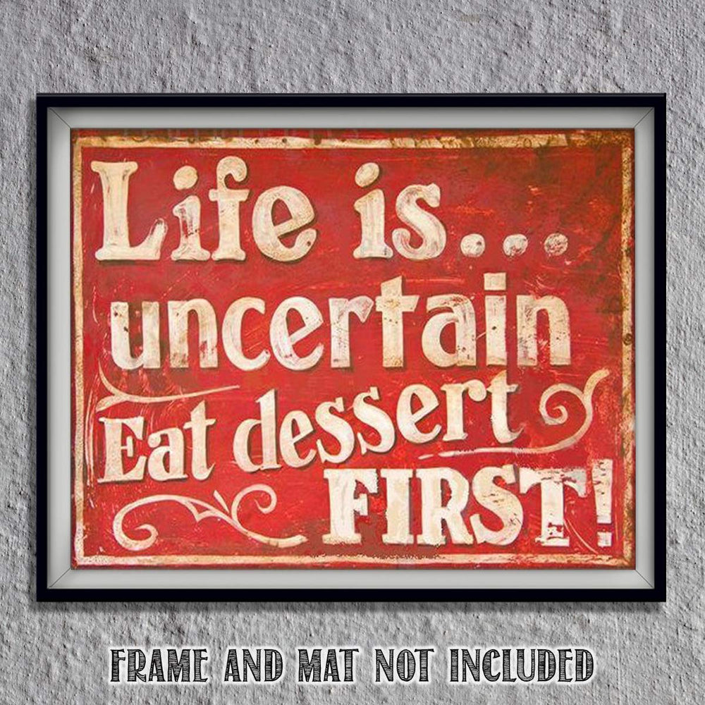 Life is Uncertain- Eat Dessert First- Vintage Funny Sign Print-8 x 10" Rustic Wall Art- Ready to Frame. Home D?cor & Kitchen Wall Decor. Great For Bar-Restaurants-Man Cave & Those with Sweet Tooth.