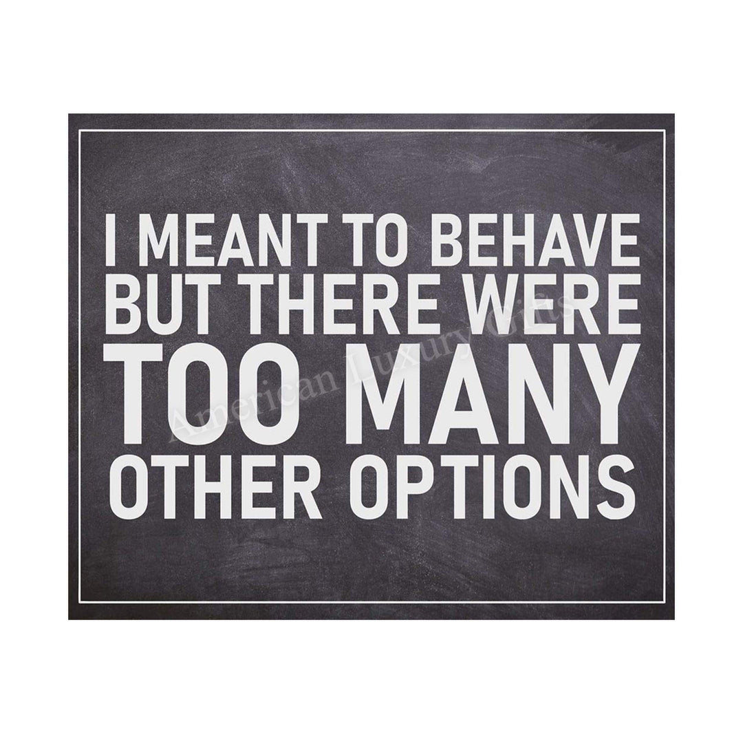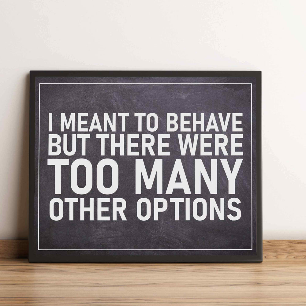 I Meant To Behave-Too Many Options- Funny Sign Poster Print- 10 x 8" Wall Decor Print-Ready To Frame. Humorous Decor for Home-Office-Man Cave-Garage-Bar-Shop. Great Novelty Sign & Gag Gift.