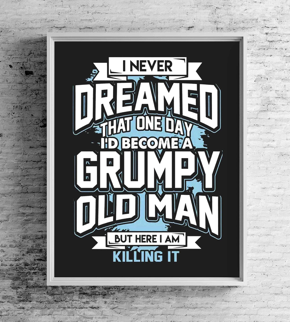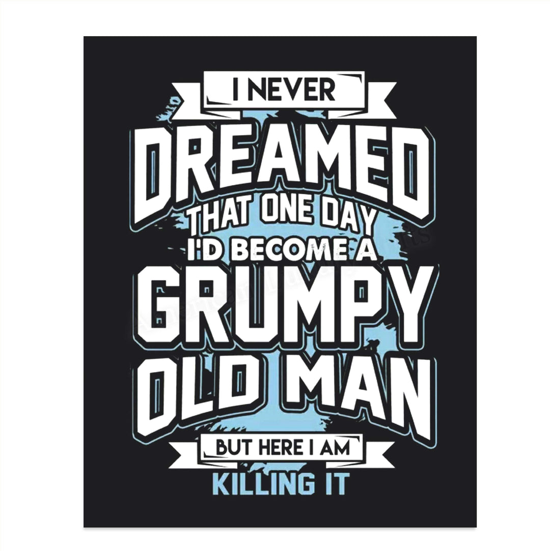 Never Dreamed I'd Become A Grumpy Old Man-Funny Sign Wall Art- 8 x 10" Typographic Poster Print-Ready To Frame. Perfect Humorous Decor for Home-Man Cave-Garage-Shop. Great Bar Sign-Novelty Gift!