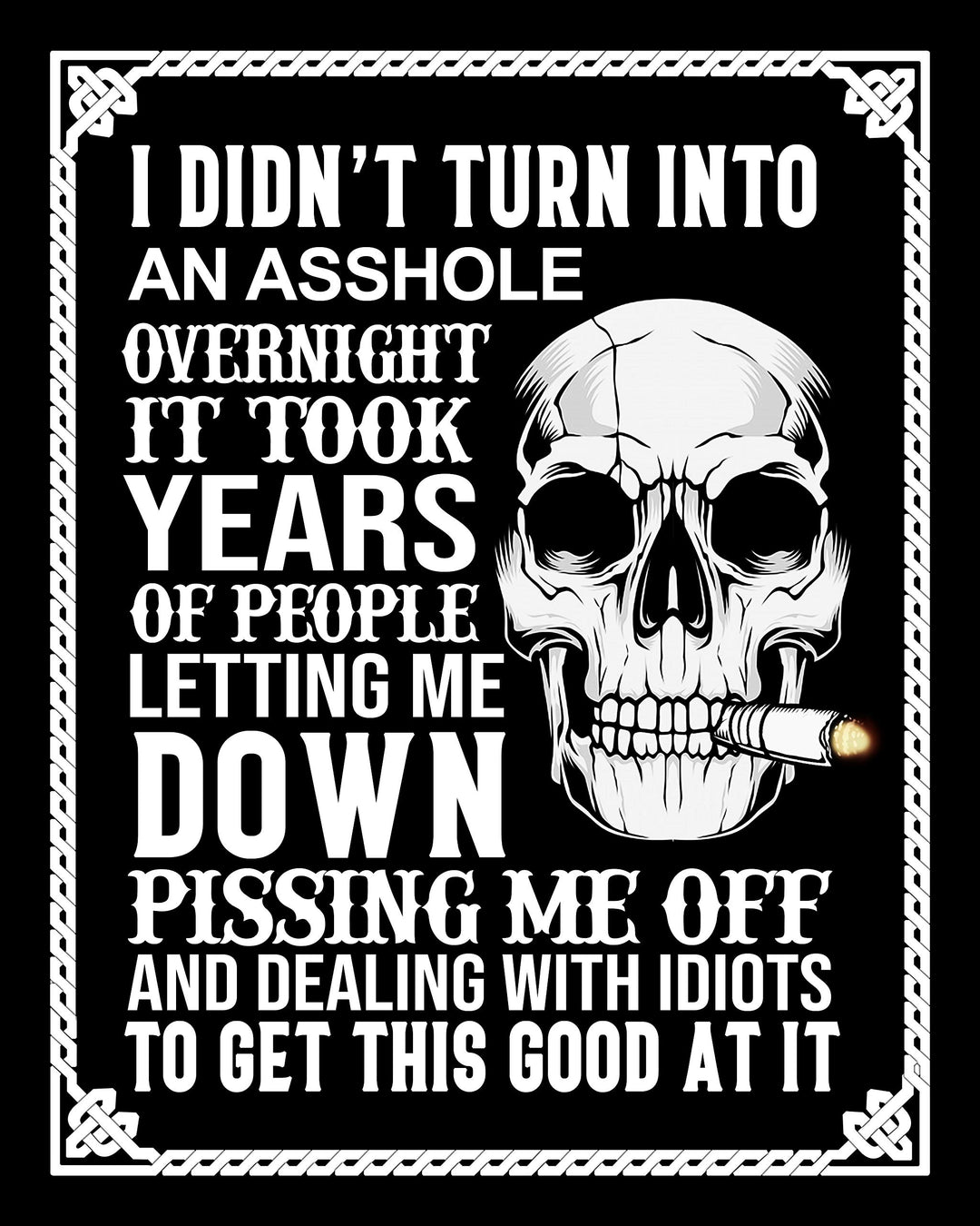 I Didn't Turn Into An A-Hole Overnight-It Took Years Funny Wall Art Sign -8 x 10" Sarcastic Poster Print-Ready to Frame. Humorous Home-Office-Bar-Shop-Cave Decor. Great Novelty Sign & Fun Gift!