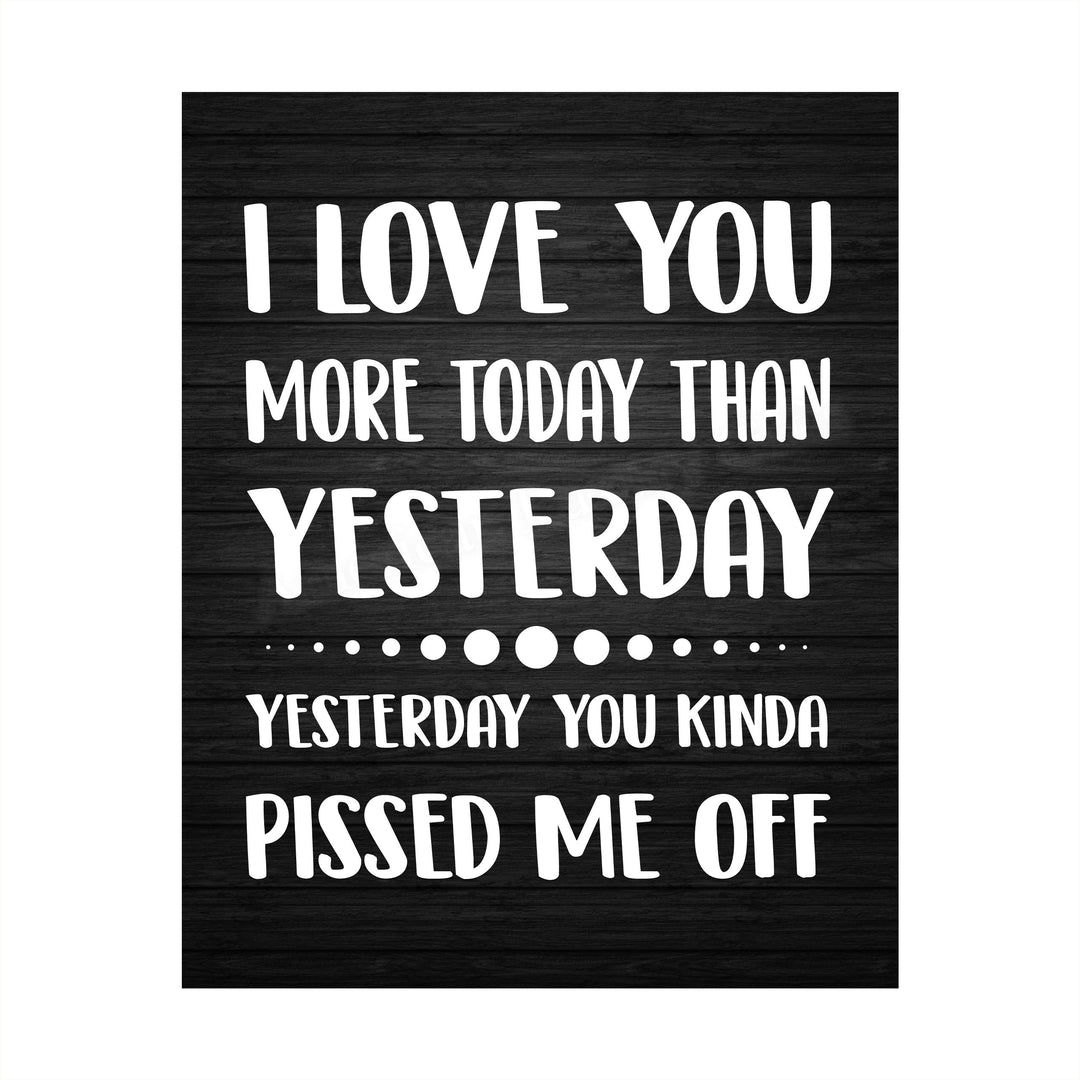 I Love You More Today Than Yesterday Funny Wall Art Sign -8 x 10" Typographic Poster Print-Ready to Frame. Humorous Home-Bar-Shop-Cave-Novelty Decor. Perfect Gift for Your Sarcastic Friends!