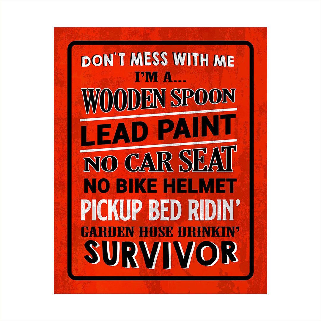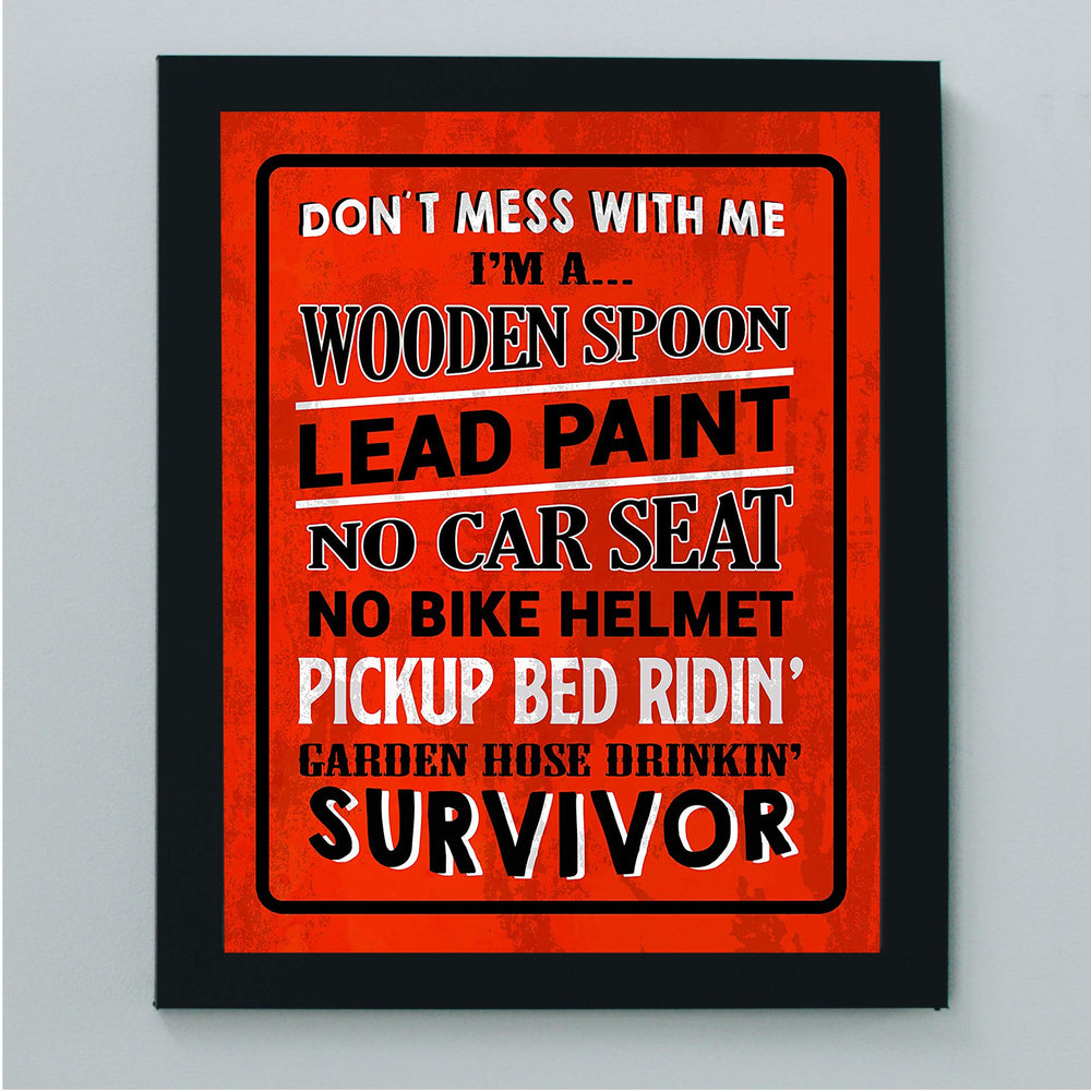 Don't Mess With Me-I'm a Survivor-Funny Wall Art Sign-8 x 10" Sarcastic Typography Wall Print-Ready to Frame. Humorous Decor for Home-Office-Study-Cave-Shop. Great Retro Gift for All"Boomers!"