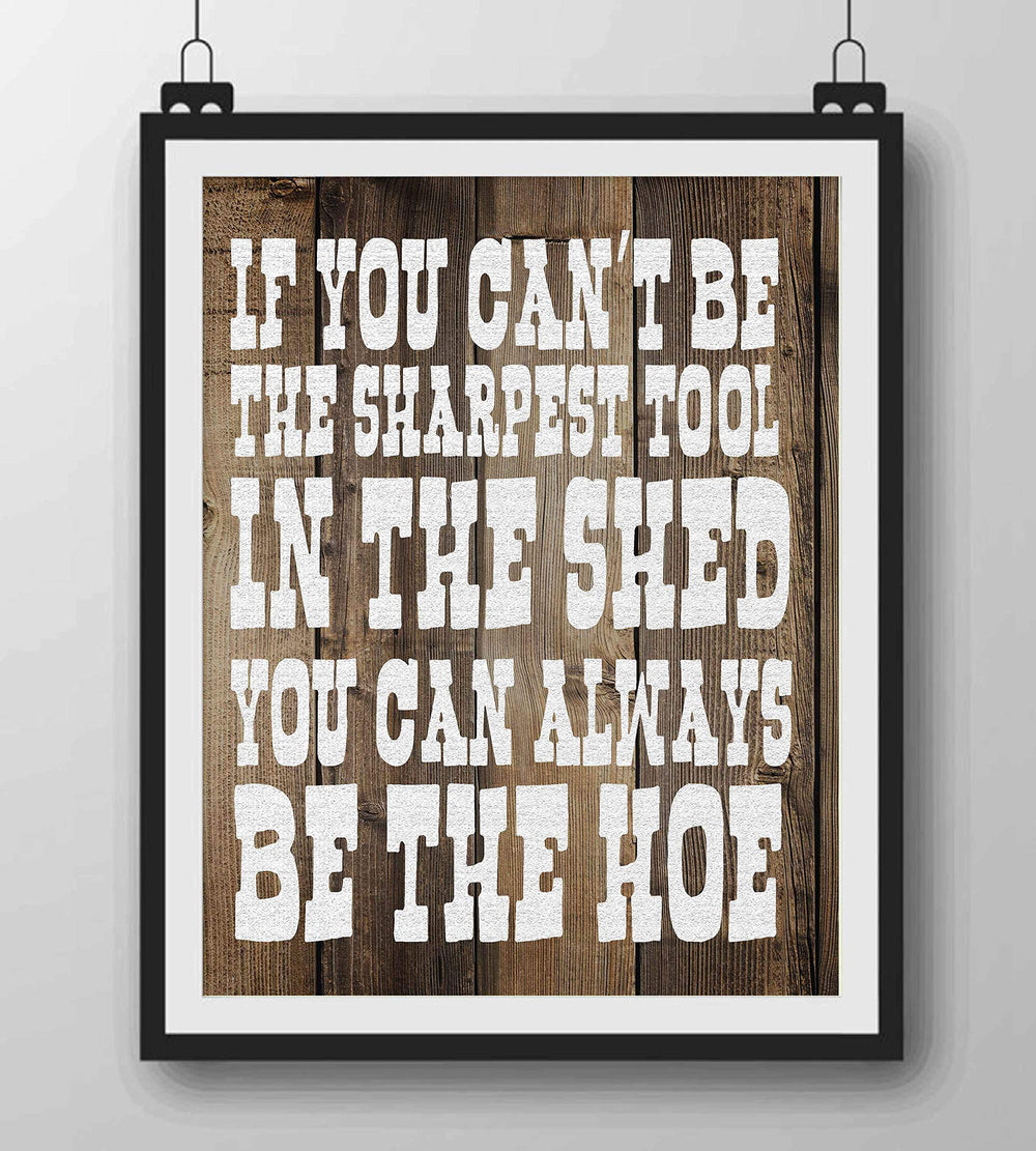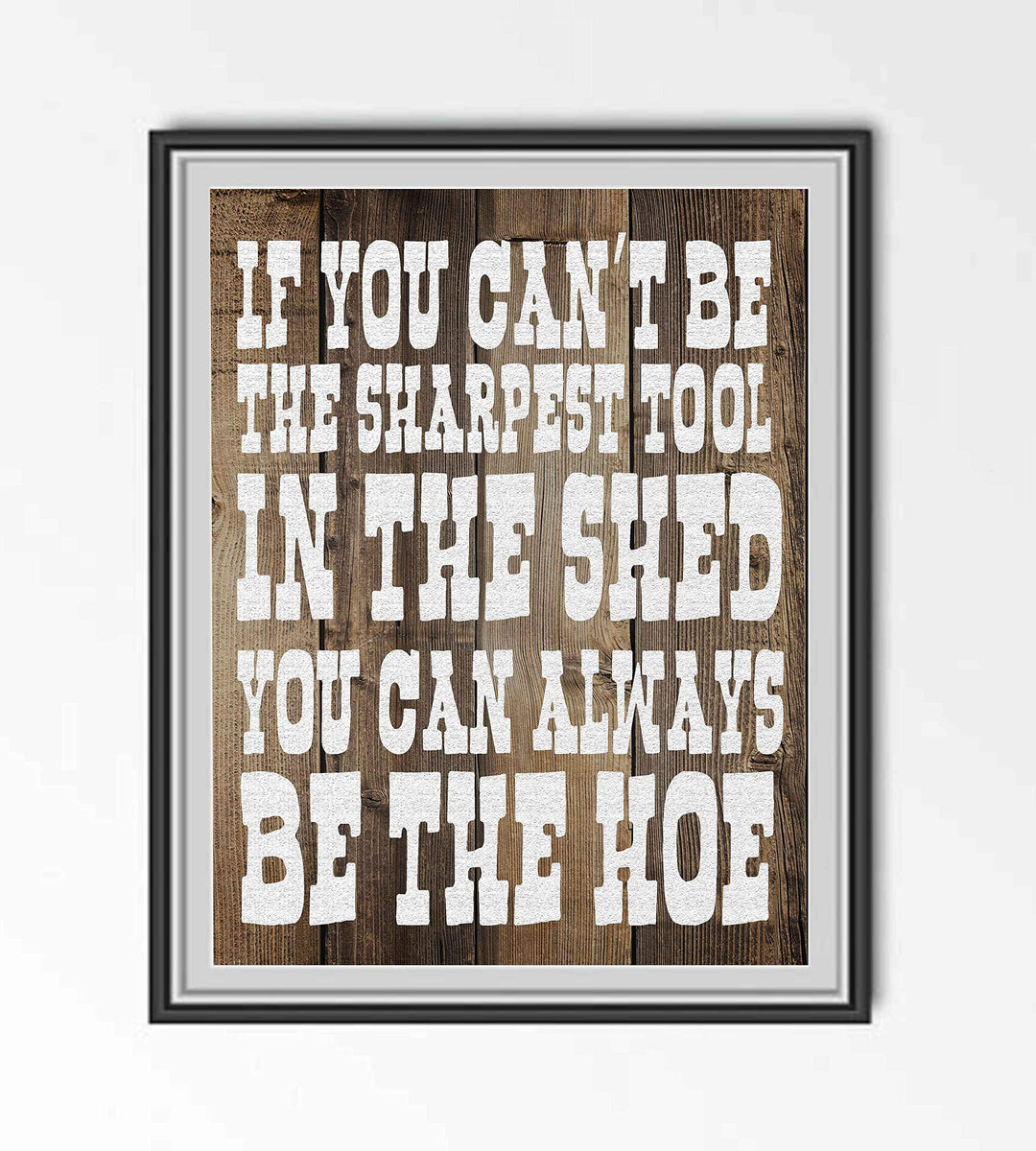 Sharpest Tool In The Shed-Always Be The Hoe- Funny Sign- 8 x 10" Print Wall Art- Rustic Wood Sign Design-Ready to Frame. Humorous Home-Office-Kitchen D?cor. Perfect for Bars, Restaurants & Man Cave.