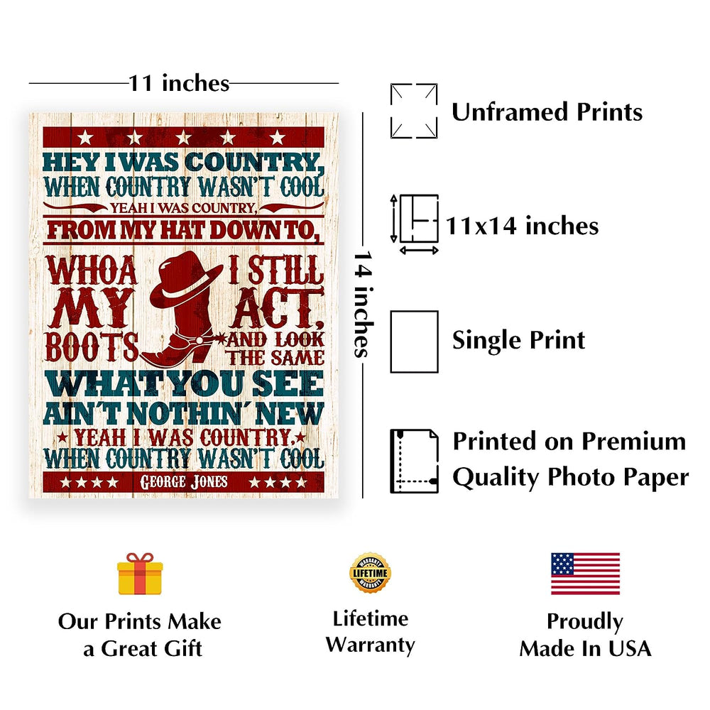 George Jones-"I Was Country When Country Wasn't Cool"-Country Music Song Lyric Art -11 x 14" Greatest Hits Wall Print-Ready to Frame. Rustic Decor for Home-Office-Studio-Bar-Dorm-Cave. Great Gift!